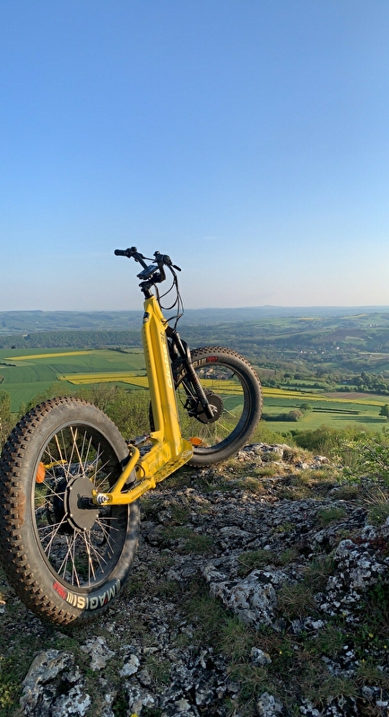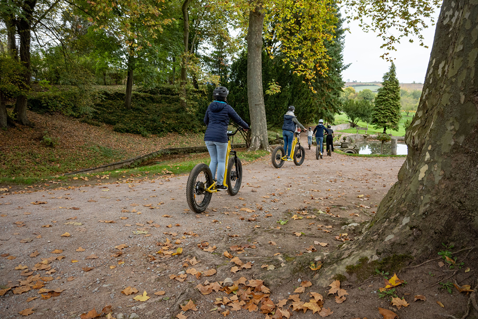 Randonnée en trottinette électrique tout terrain encadrée par un guide diplômé pour vous emmener découvrir les chemins les plus secrets en toute sécurité.