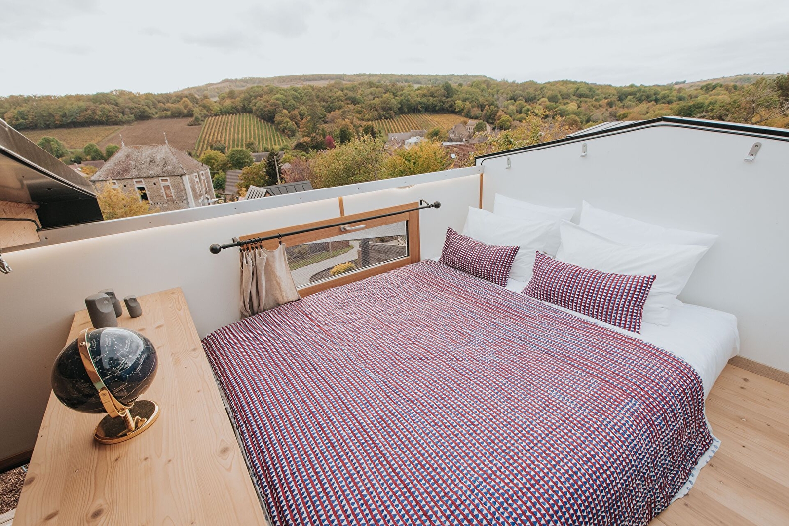 Nichées sur la colline qui surplombe le petit village viticole de Change, au sud des Hautes Côtes de Beaune, les Cabottes sont des micro-maisons en bois insolites. Sous leurs charmants airs miniatures, ces "Tiny Houses" se révèlent étonnement spacieuses à l'intérieur.