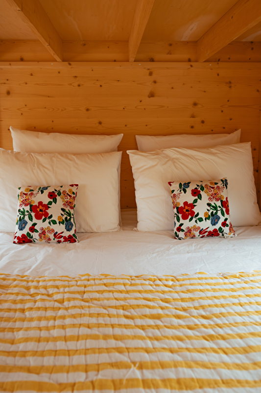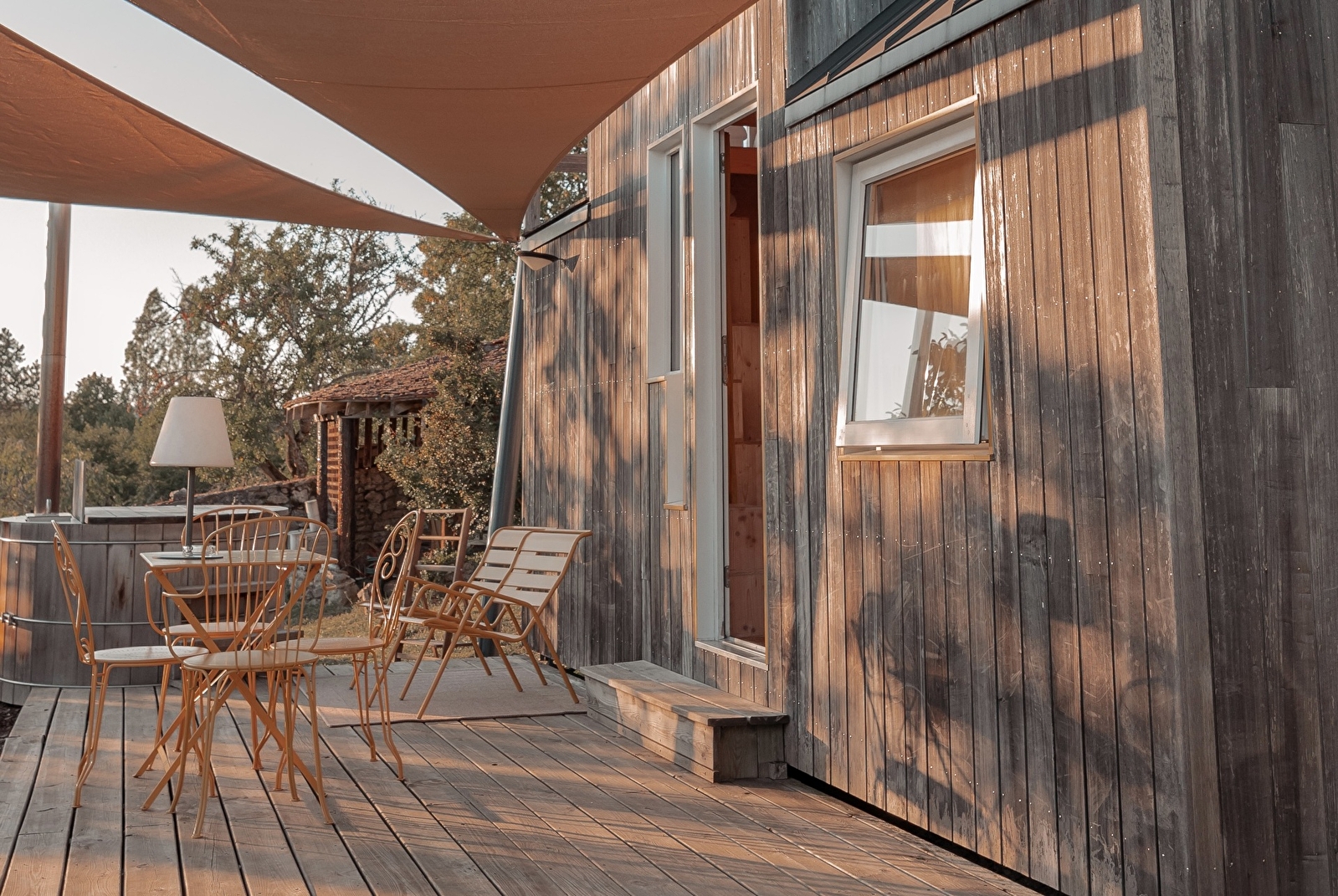 Nichées sur la colline qui surplombe le village viticole de Change, au sud des Hautes Côtes de Beaune, les Cabottes sont des micro-maisons en bois plutôt surprenantes. Sous leurs charmants airs miniatures, ces "Tiny Houses" se révèlent étonnement spacieuses une fois à l'intérieur.