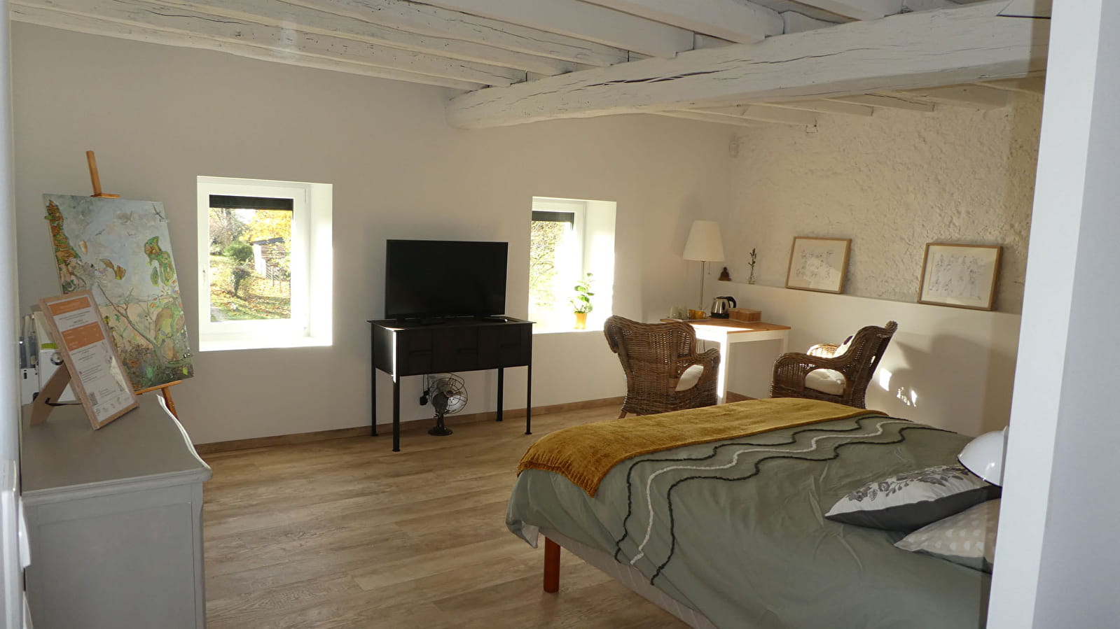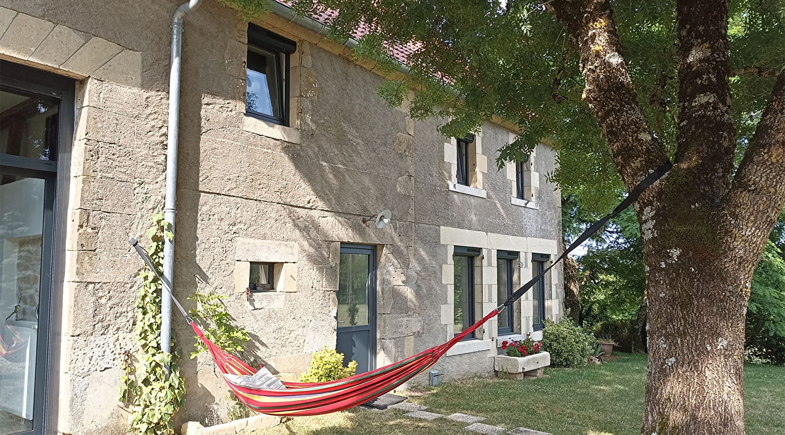 Située sur la colline du Val de Bargis, entourée de prés et de forêts, entre la Loire, ses vignobles, et le parc naturel régional du Morvan, Les Chaumes est une ancienne ferme entièrement rénovée qui a gardé dans son âme les animaux qui l’ont habité jadis.