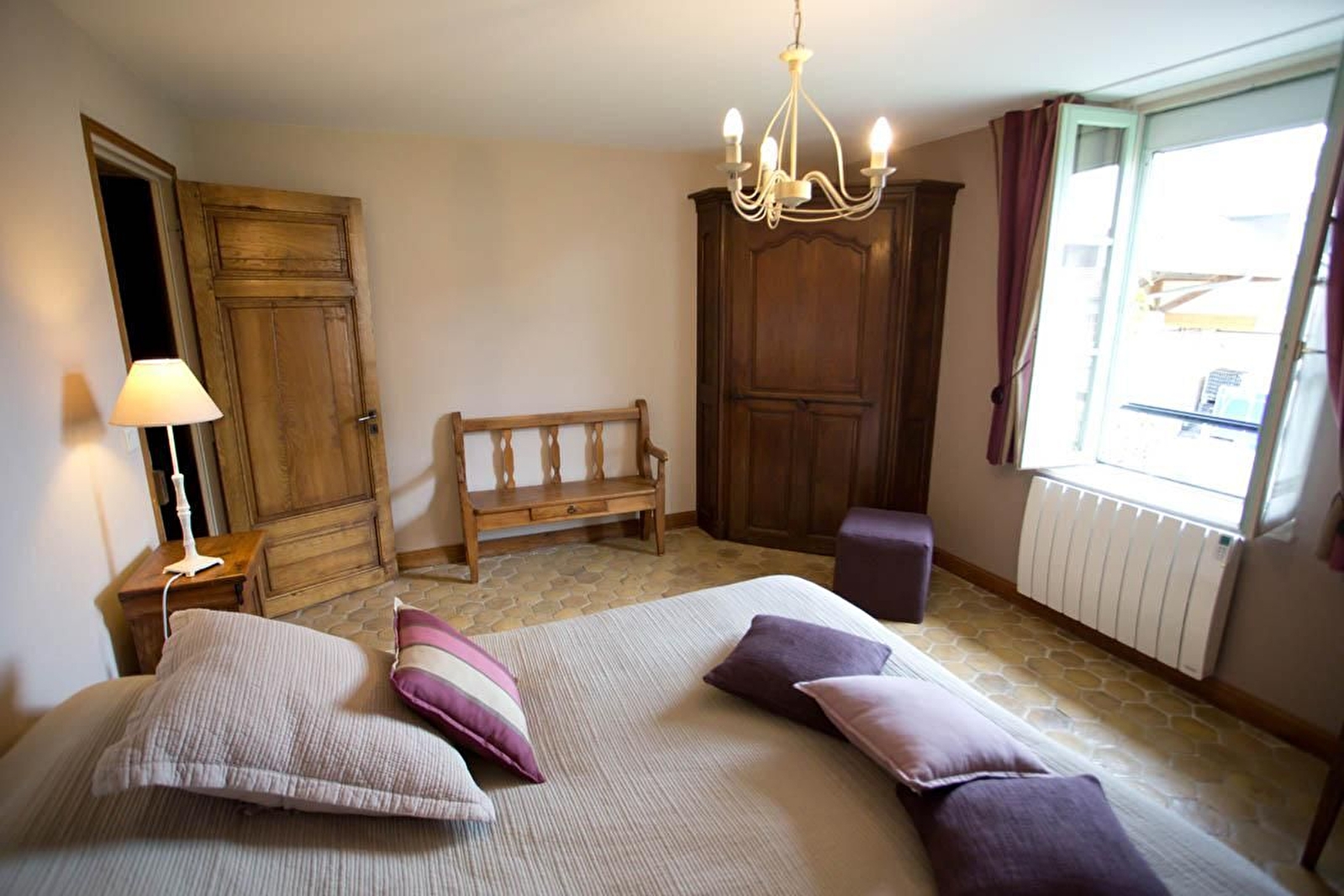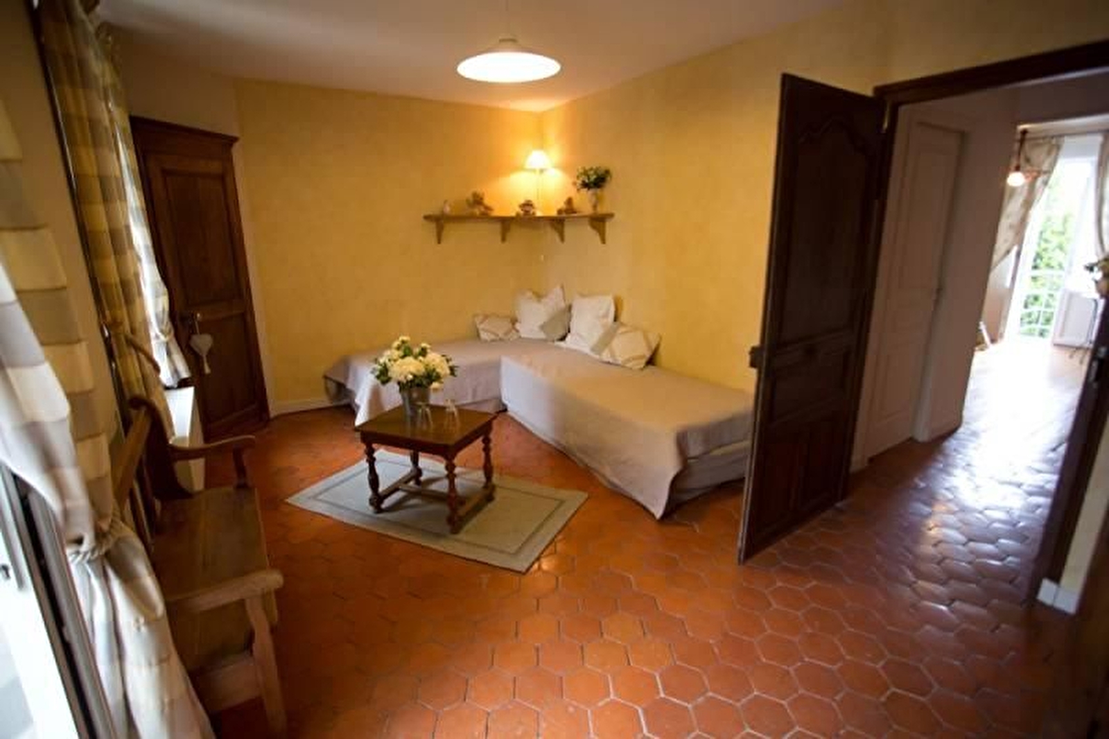 Chambre Rugiens : Ces deux grandes chambres communicantes, chacune avec son entrée indépendante sont idéales pour accueillir amis ou famille de 4 personnes. L'une est dotée d'un lit 180x200cm (ou 2x90x200 cm), d'un canapé convertible, d'une salle de bains et WC séparé. L'autre, avec ses jolies tomettes, dispose de 2 lits 90x200cm jumelables et d'une salle d'eau avec WC.