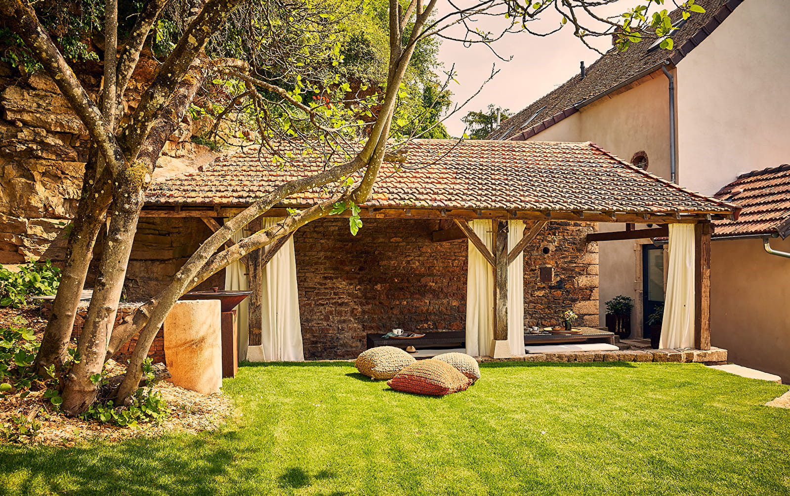 Plantée sur la roche dorée de Montagny-lès-Buxy, petit village de la Côte Chalonnaise en Bourgogne du Sud, la maison VILLA FIGUE BLANCHE, rénovée après 18 mois d’importants travaux de rénovation, a reçu ses premiers hôtes en mars 2021.