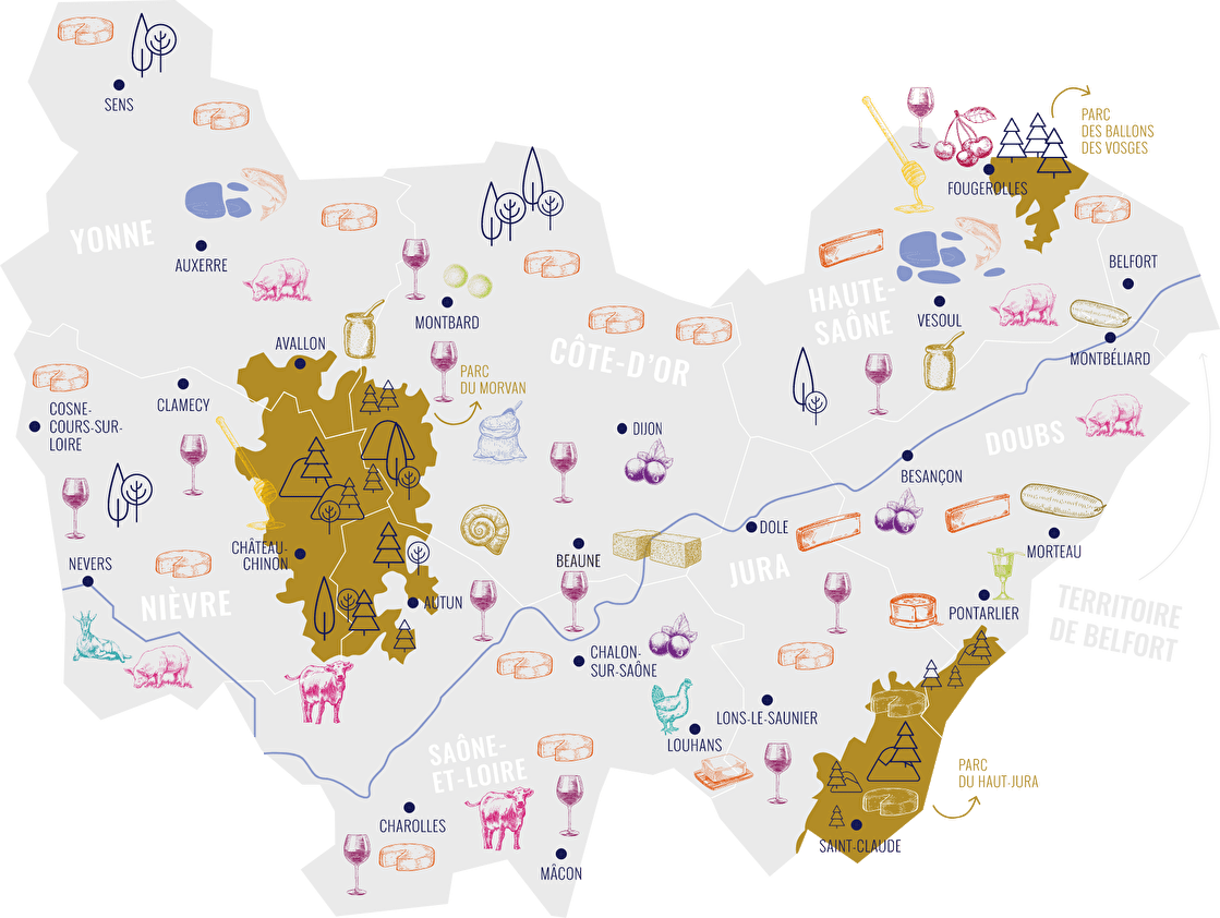 Nous avons imaginé pour vous plusieurs routes gourmandes aux 4 coins de la Bourgogne-Franche-Comté pour (re)découvrir les bons produits et la gastronomie de votre région.