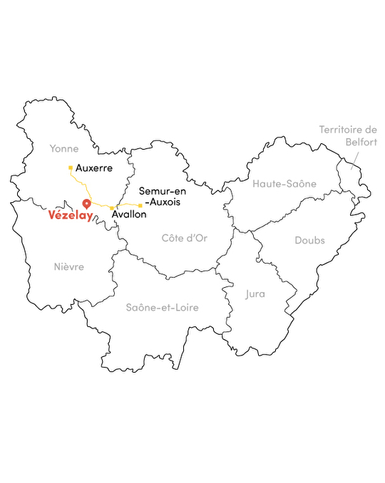 Après votre passage à Vézelay, continuer votre parcours pour découvrir des paysages splendides, des vignobles vallonnés et des étapes gourmandes : Semur-en-Auxois, Auxerre et Avallon vous accueilleront à bras ouverts pour faire le plein de gourmandises.