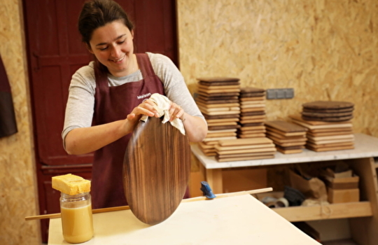 Passionnée par la nature et le bois, Margot crée des objets uniques en bois éco-responsable. Dans son atelier, elle fabrique des planches à découper, bols, soliflores et des jeux en bois réalisés grâce aux arbres du Jura. Passez lui rendre visite et jeter un coup d'œil à ses créations !