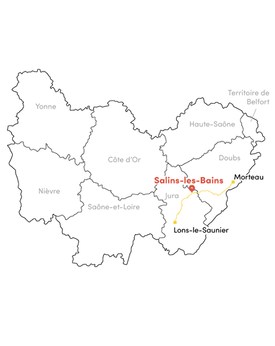 Idéalement située dans le vignoble du Jura, Salins-les-Bains est une merveille régionale de cité thermale. L'étape indispensable pour prendre le temps, se détendre, déguster des bons produits, se laisser aller à la gourmandise…