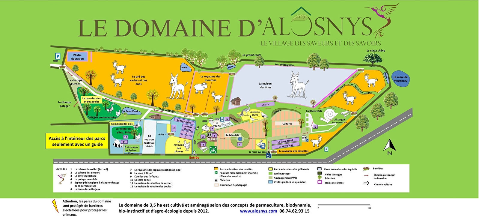 Découvrez le domaine d'Alôsnys, parc de 3.5 ha avec son jardin mandala en auto-cueillette, ses parcs d'animaux, son espace formation, ses airs de jeux, sensoriels et de loisirs, sa grande collection d'aromatiques, ses plantes médicinales, la pépinière, le petit magasin et la graineterie. Découvrez son grand chemin pieds nus en forme d'escargot. Petite dégustation ouverte à tous les visiteurs.