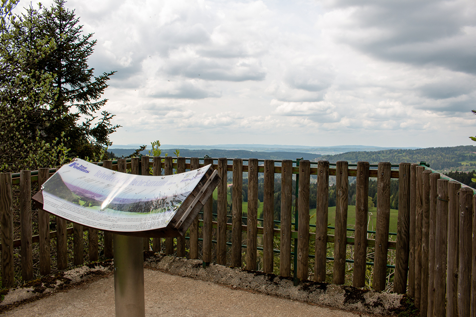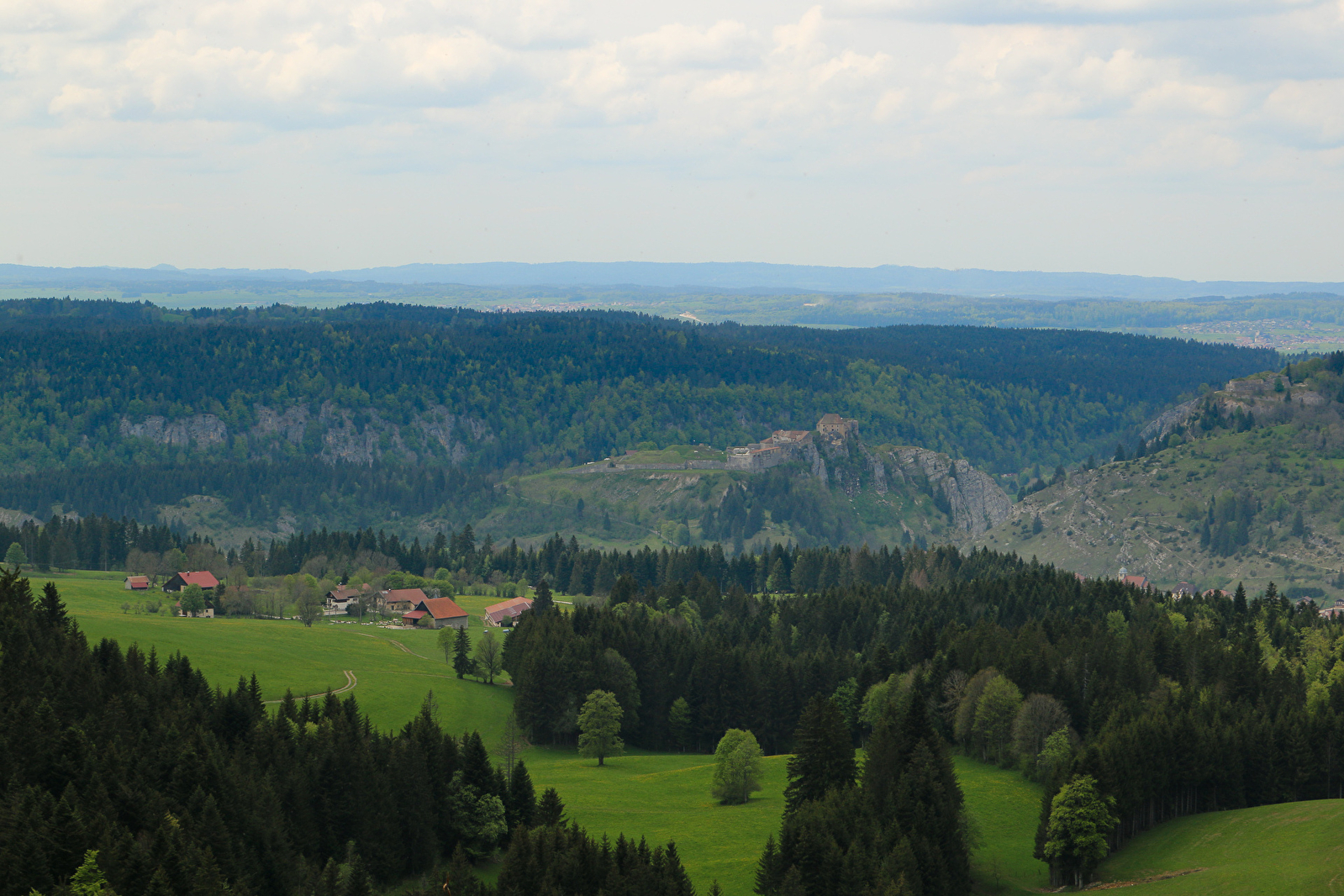 Point de vue sur le plateau d'Arlier, le Château de Joux, le Larmont, le Grand Taureau, le Fort Malher et même le point de vue du moine qui surplombe Ornans. Table d'interprétation et d'orientation. Coin pique-nique. Accessible en randonnée pédestre et VTT en été. Accessible en raquettes en hiver.