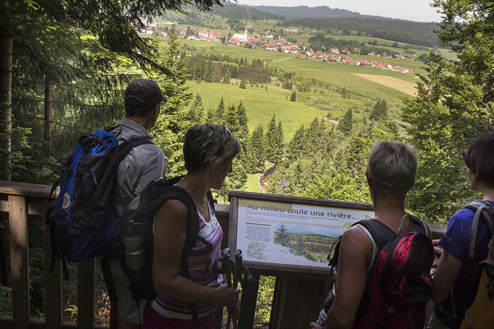 Perché au dessus de la Source du Doubs, ce belvédère vous offre un point de vue remarquable sur le village de Mouthe.