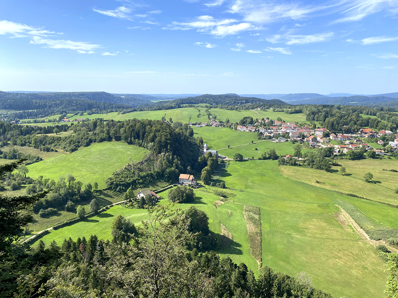 Aménagé sur un éperon rocheux au-dessus du plateau de Chaux-des-Crotenay, le belvédère du Rachet offre une vue grandeur nature sur la forêt de « Derrière Cornu », le rocher de la Baume, les gorges de la Saine et de la Lemme ainsi que le bucolique plateau de Nozeroy, voire sur le mont Rivel par temps clair.