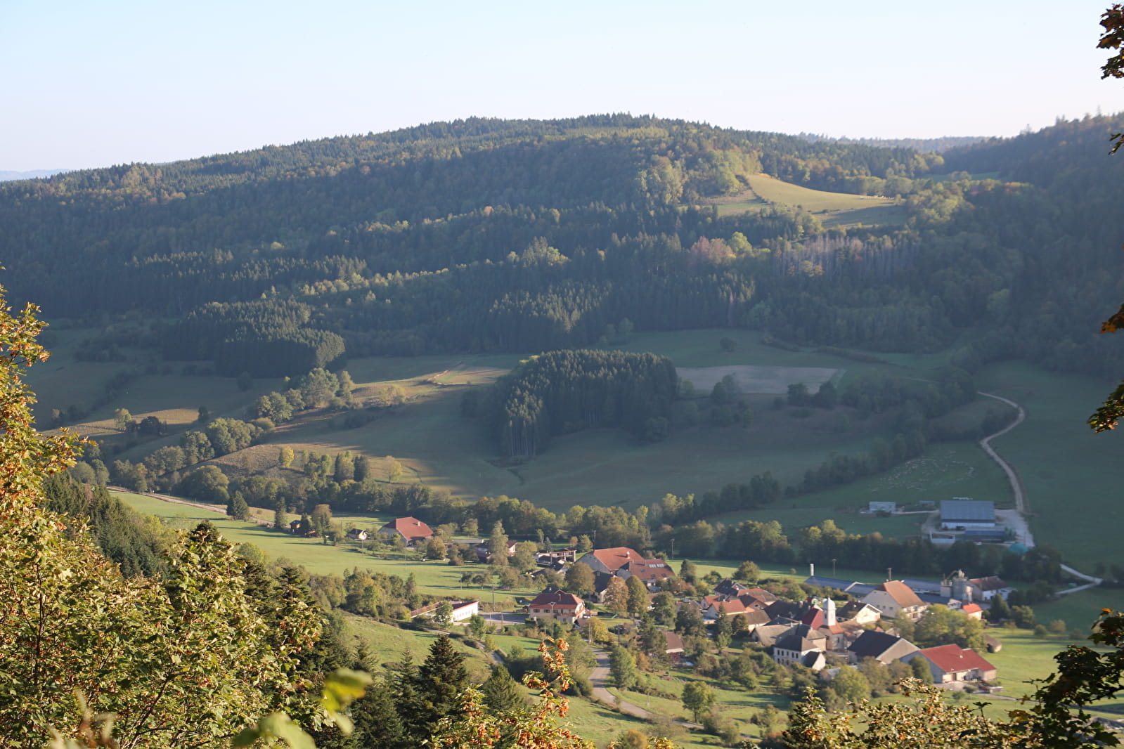 À 888 mètres d’altitude, il offre une vue à 180° sur la vallée des Nans, mais également sur le « plateau de Nozeroy » et les sommets d’arrière-plan : à gauche la montagne du Laveron (Doubs) et les aiguilles de Baulmes (Suisse), à droite le massif de la Haute Joux. Lorsque la météo s’y prête, on peut même distinguer le Mont Blanc !