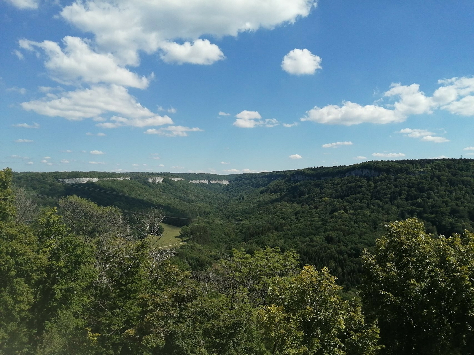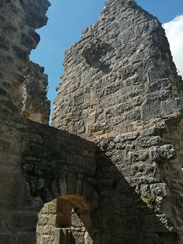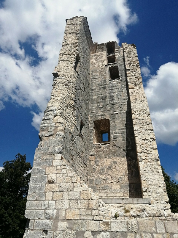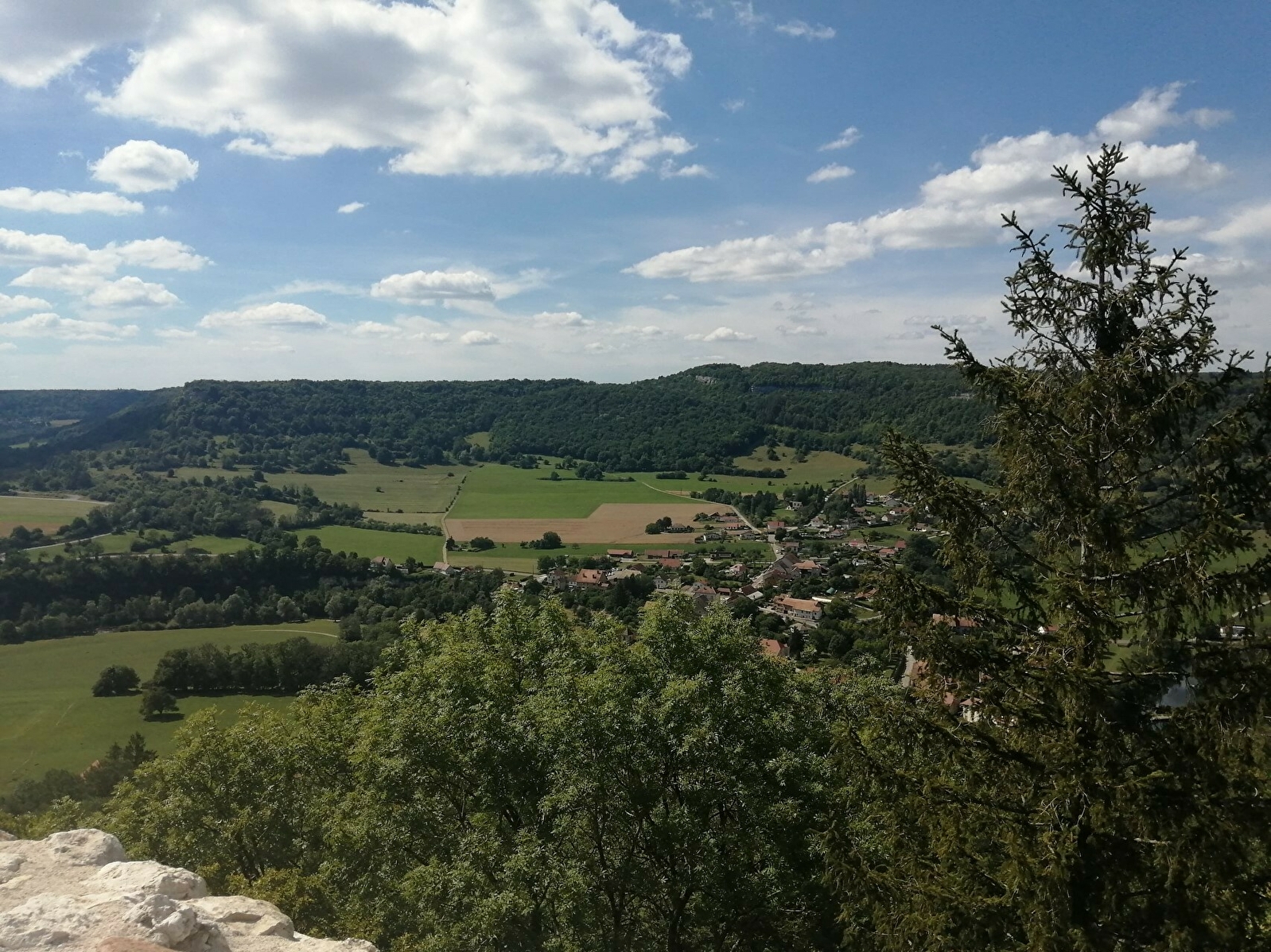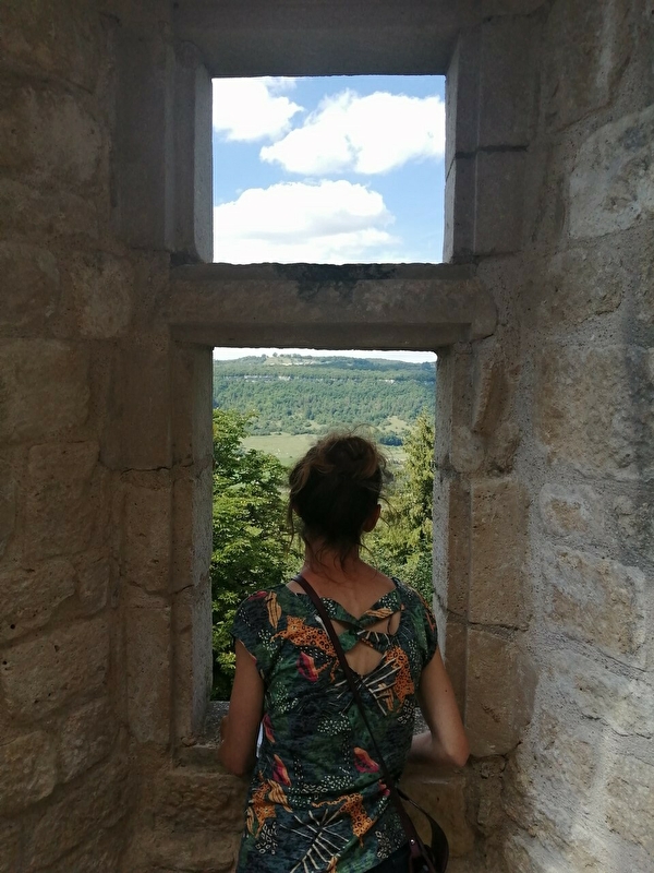 Juché au sommet d'un éperon rocheux, surplombant la vallée de la Loue, le Castel Saint-Denis s'étend sur 250 m de longueur pour 70 m au plus large.