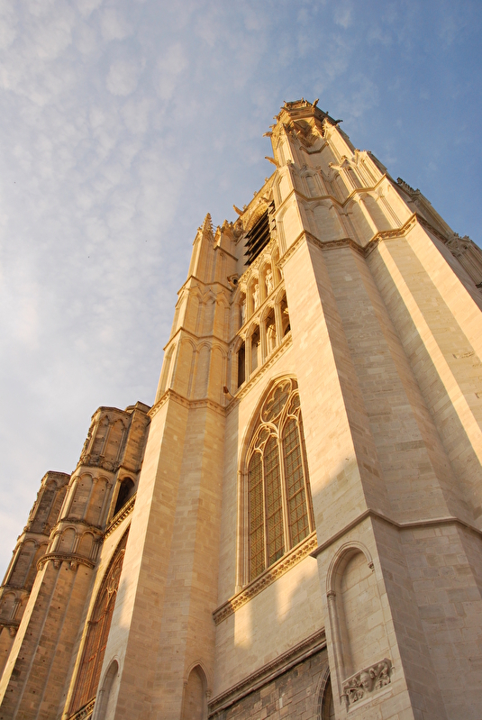 Vers 1130, au moment où s’élèvent partout des constructions romanes, un maître d’œuvre novateur fait naître à Sens une cathédrale ample, d’un volume simple et continu, constitué d’un vaisseau central et de deux collatéraux où est employée une conception révolutionnaire du voûtement : la croisée d’ogives. Entre 1490 et 1517, l’architecte Martin Chambiges réalise un grand transept dans un gothique flamboyant.