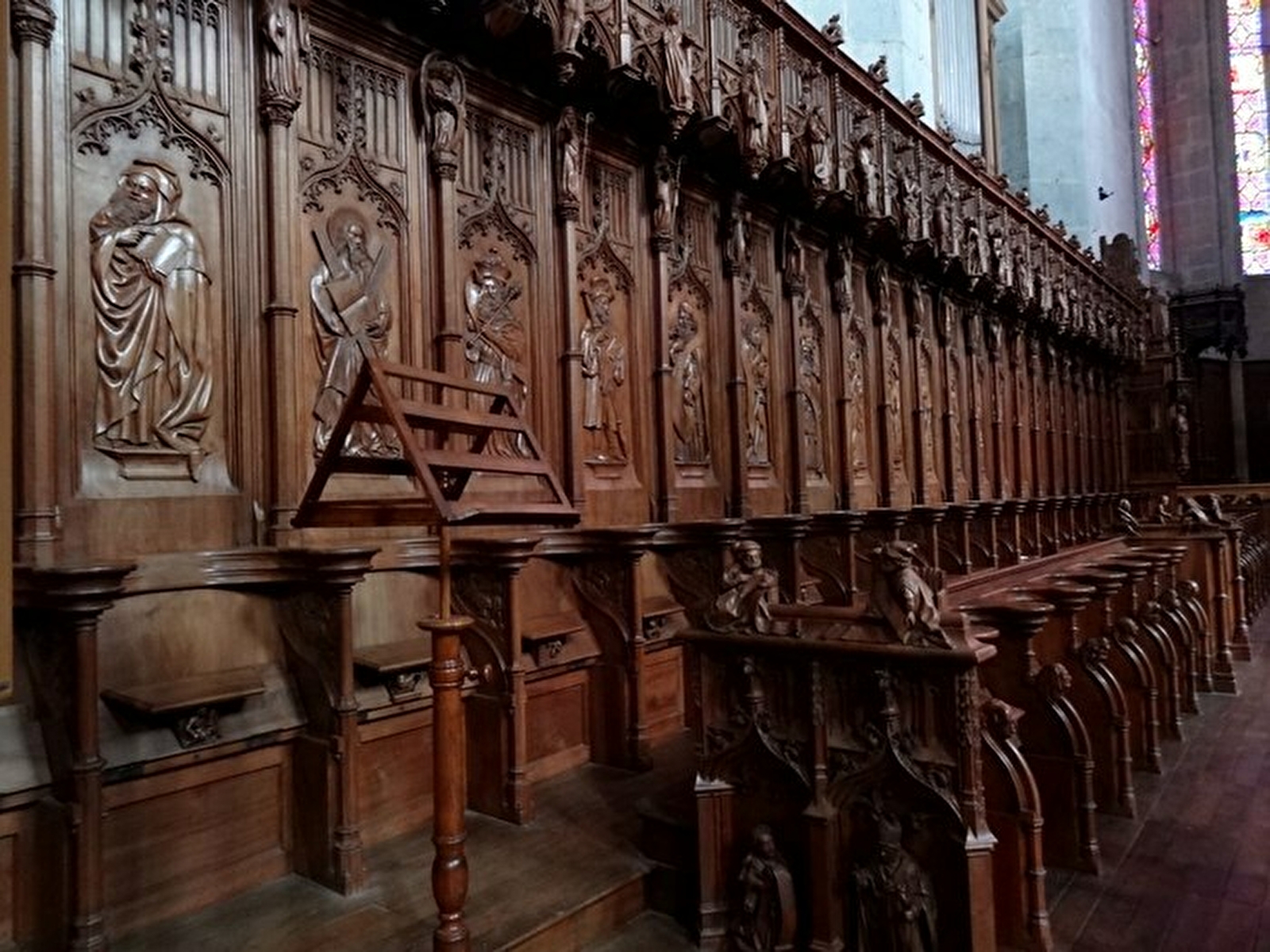 Elle possède des stalles considérées comme faisant partie des plus belles de France. Datant du XVème siècle une partie a été reconstituée à l'identique après un incendie en 1983.