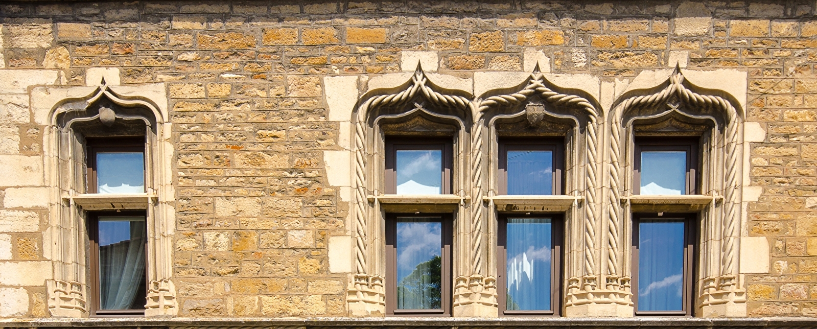 La ville de reconstruit autour de l’Eglise Saint Georges et de belles maisons s’édifient sur un modèle encore médiéval, celui de la maison rectangulaire flanquée d’une tourelle d’escaliers. Elles s’ornent de fines décorations empruntées au vocabulaire gothique.