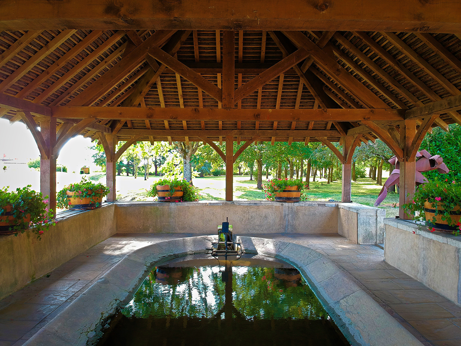 3- Lavoir des Fontaines. Il est de 1877. Sa particularité tient à sa toiture en impluvium.
