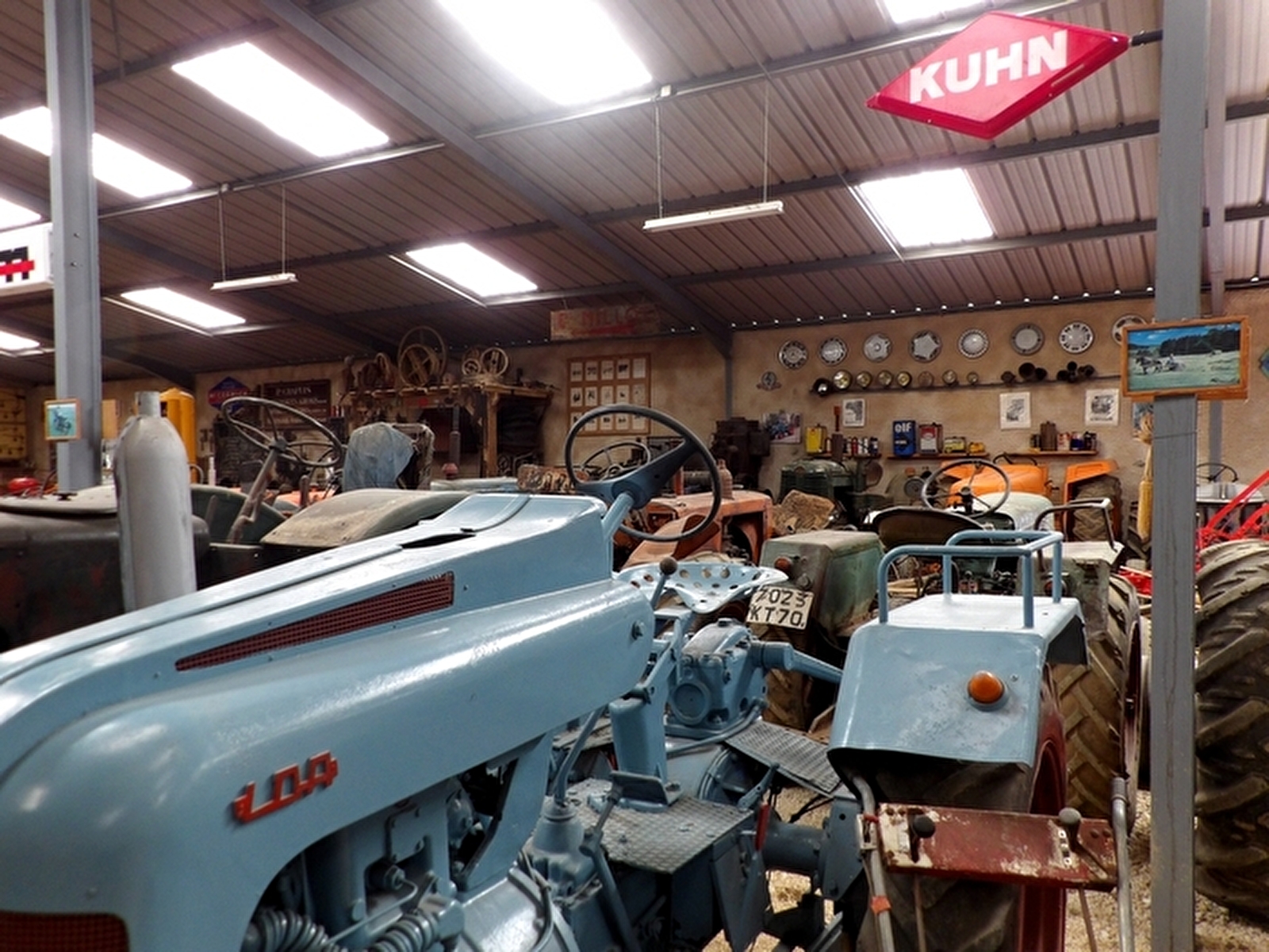 Tracteurs agricoles, véhicules militaires, moteurs fixes, autos, motos, vélos, matériels divers retraçant les métiers d'autrefois.