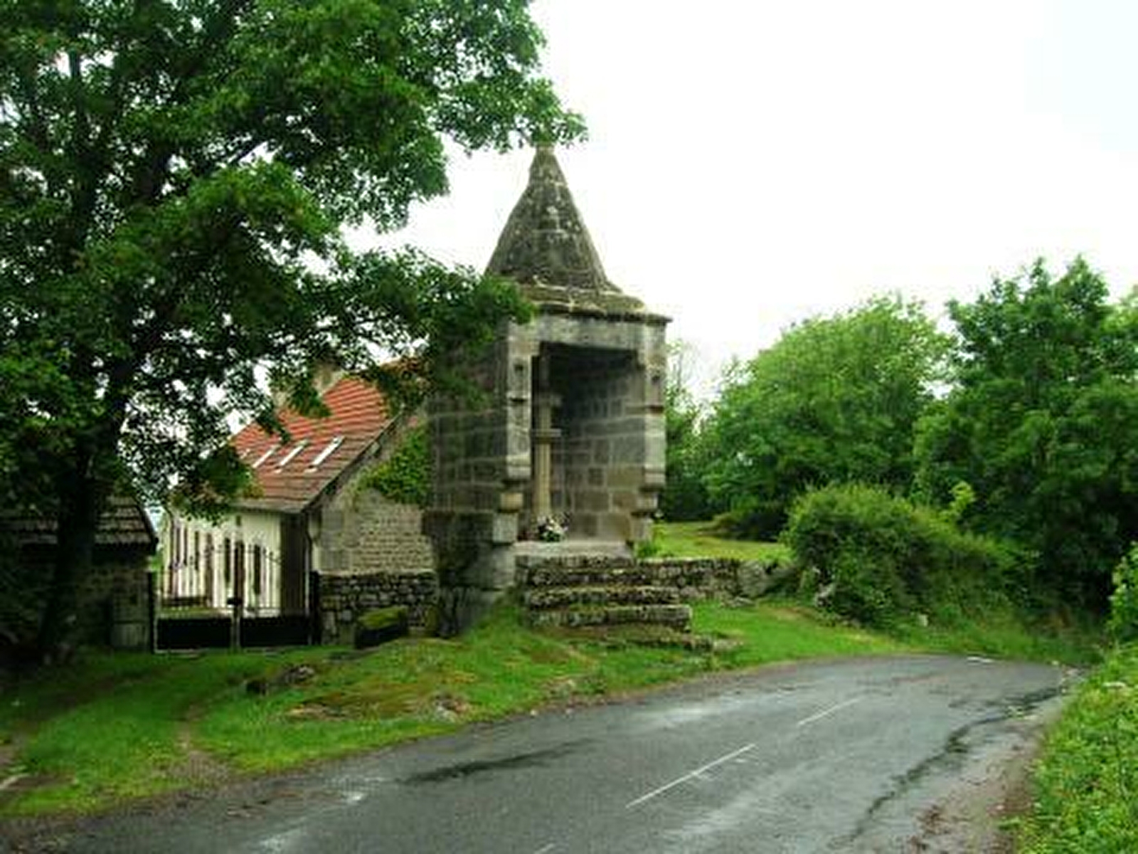 À l’intérieur, un calvaire surmonté d’une Vierge à l’Enfant est posé. Il est en grès, finement sculpté. La Vierge n’a été ajoutée que récemment, entre 1920 et 1950. La maçonnerie à l’intérieur ne présente pas de détail ou décor particulier hormis la présence d’une pierre traversante (façade Ouest) formant un chapiteau sculpté et une croix en bas-relief à l’extérieur.