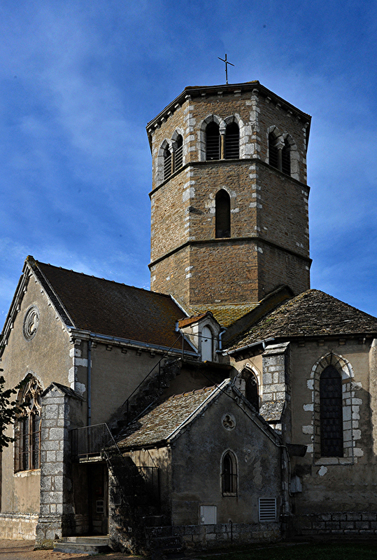 L'église de l'Assomption d'Hurigny, avec son clocher octogonal à 2 étages, date du XIIIe siècle. La nef a été refaite en 1898 et ornée des vitraux du maître-verrier lyonnais Lucien Bégule.