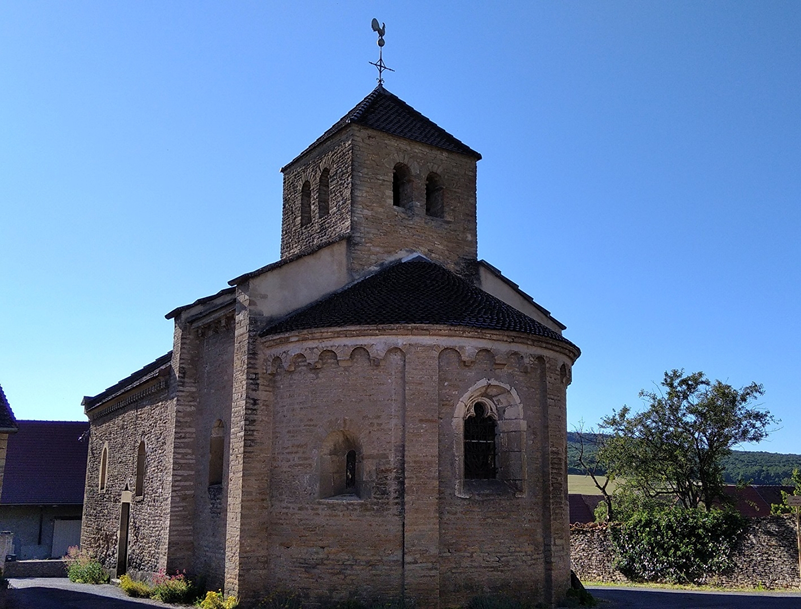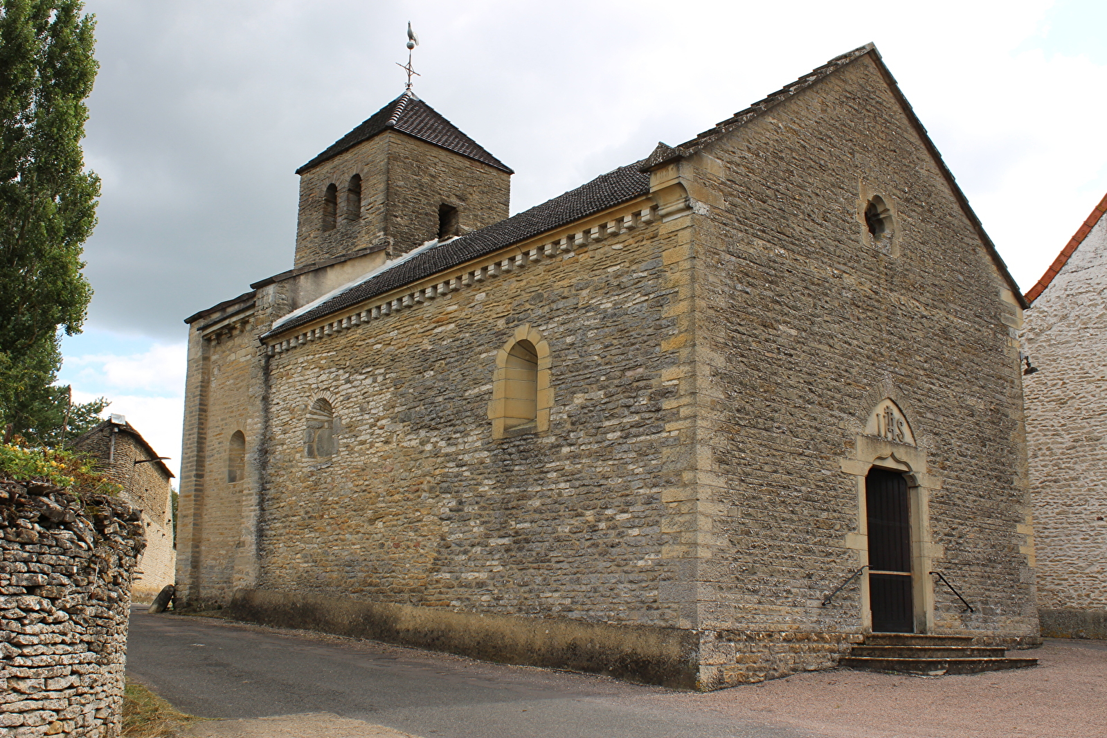 L’église, datant du milieu du XIIe siècle, a dû être construite par les moines bénédictins de Cluny, qui possédait un prieuré à Germagny jusqu’au XVe siècle (maison Chaumont). Un soubassement en arêtes de poisson témoigne de fondations plus anciennes.