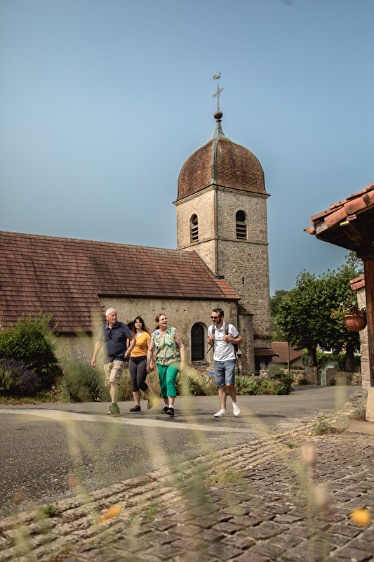 Son église à chœur ouvert est sous le patronage de Saint-Pierre des Liens. L’entrée est surmontée d'un clocher porche au dôme comtois typique. Le clocher comtois "à l'impériale" est né à Florence, au 14e siècle. Il arrive tardivement en Franche-Comté. Il en existerait 124 dans le Jura.