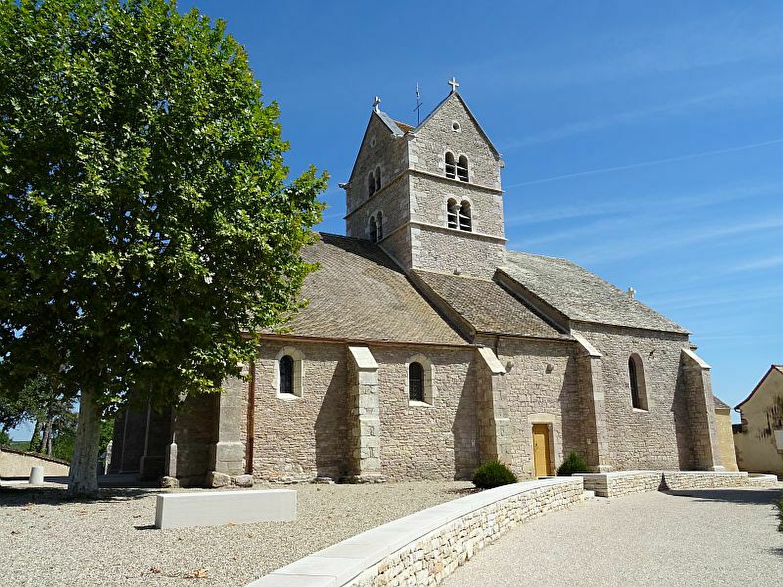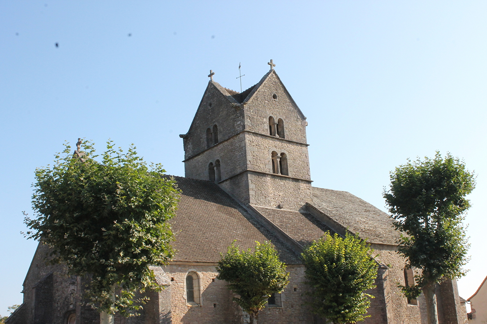 Eglise du début du XIIIe, agrandie au XVIe siècle, placée sous le vocable de saint Symphorien, elle domine de son clocher rectangulaire Mercurey et la côte chalonnaise. Face à elle sur la colline de Mercurey on trouve l’église romane Notre Dame (XIIe siècle) point de passage des pèlerins en route vers Compostelle.