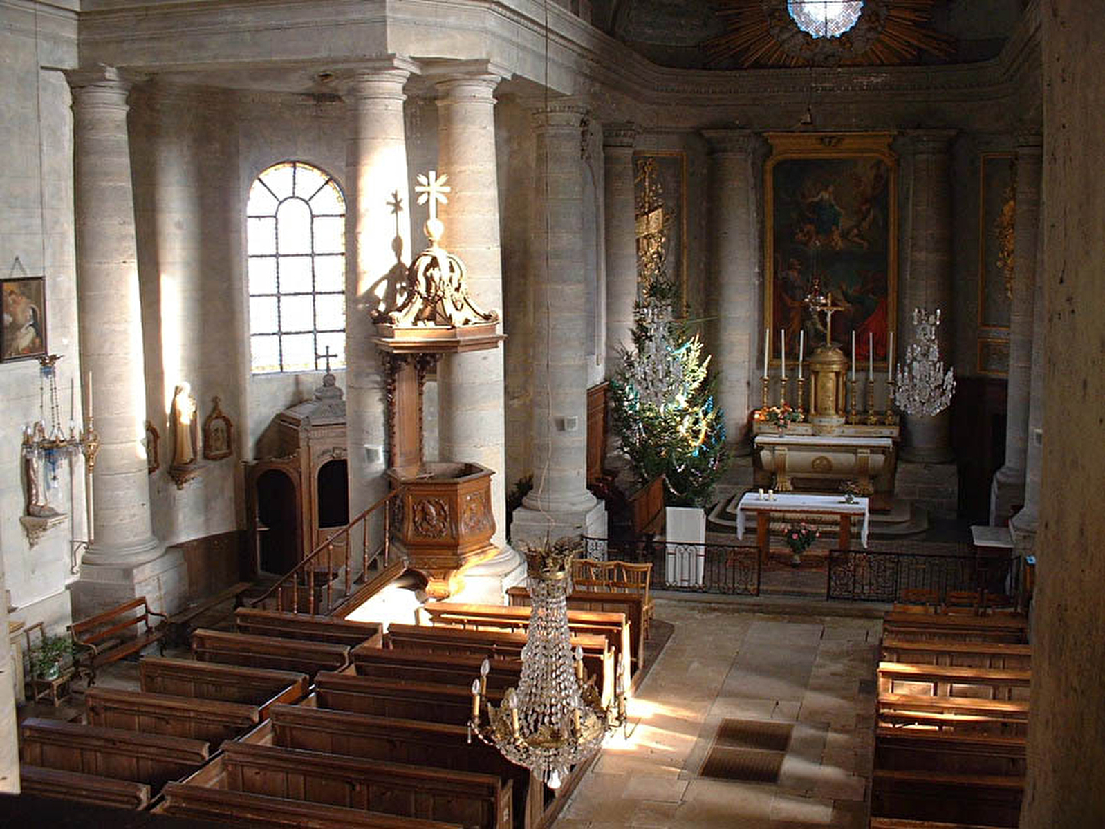 Superbe église construite au 18e s., au centre du village de Voray sur l'Ognon. L'architecte franc-comtois Nicole fut invité à réaliser cette œuvre classée aujourd'hui Monument Historique. M. Nicole est, entre autres, l'auteur de l'église de la Madeleine à Besançon.
