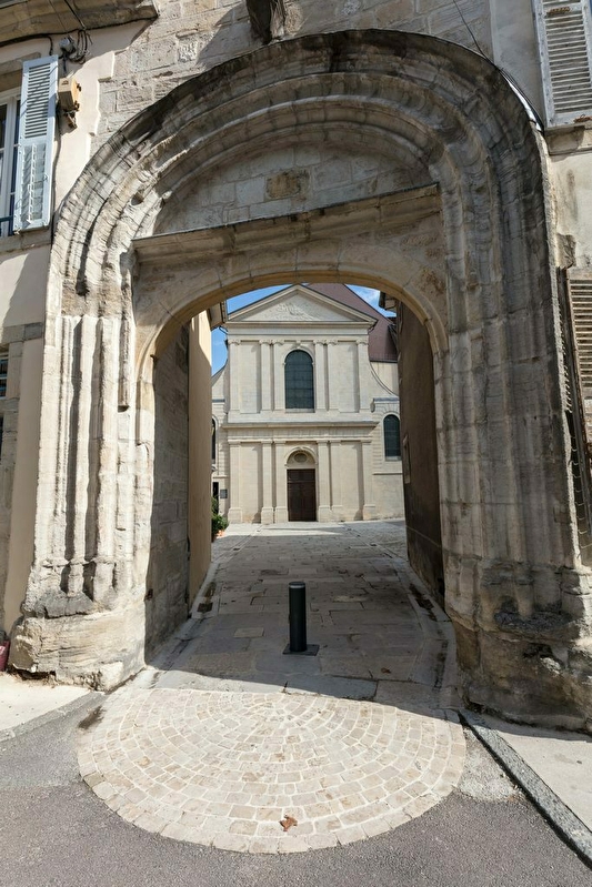 C’est un monument discret, caché au fond d’une petite cour, elle-même fermée par un splendide porche du XVème siècle, rue des Cordeliers à Lons-le-Saunier. Mais c’est une magnifique église, élevée, à l’origine au XIIIème siècle, et qui, par suite de nombreux incendies, date aujourd’hui essentiellement du XVIIIème siècle (notamment par sa façade de style jésuite, achevée en 1731).