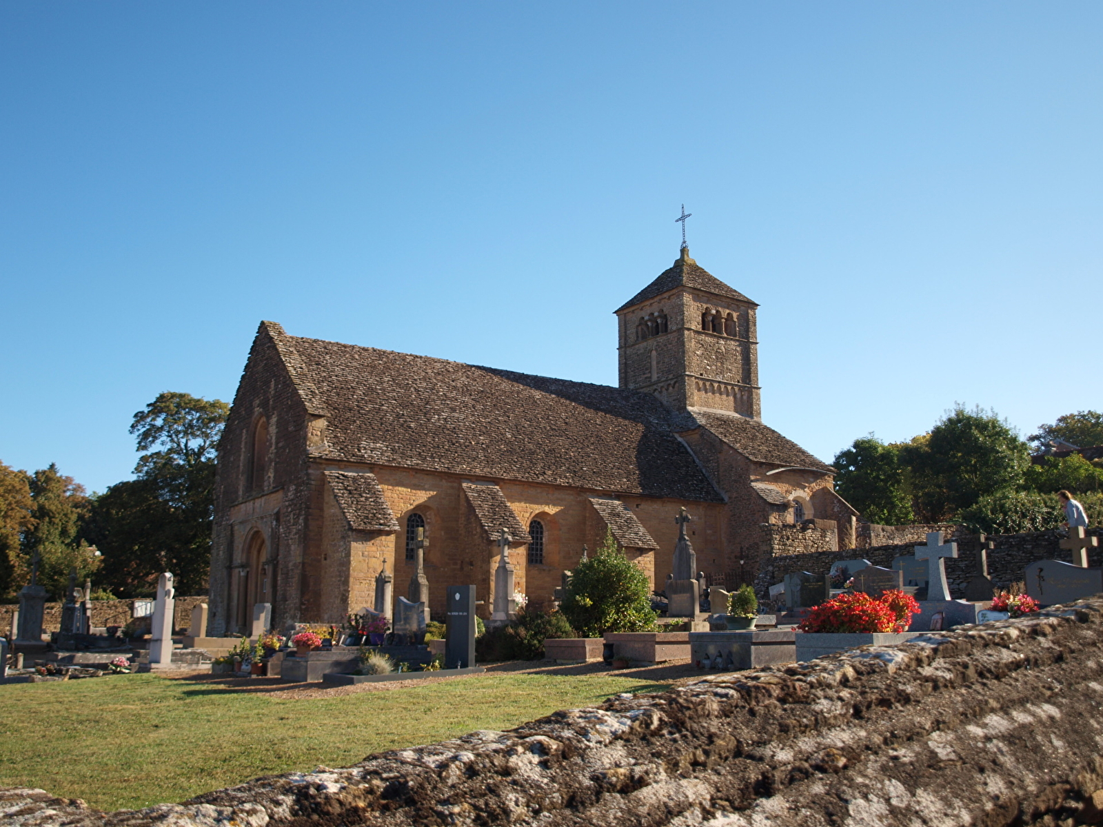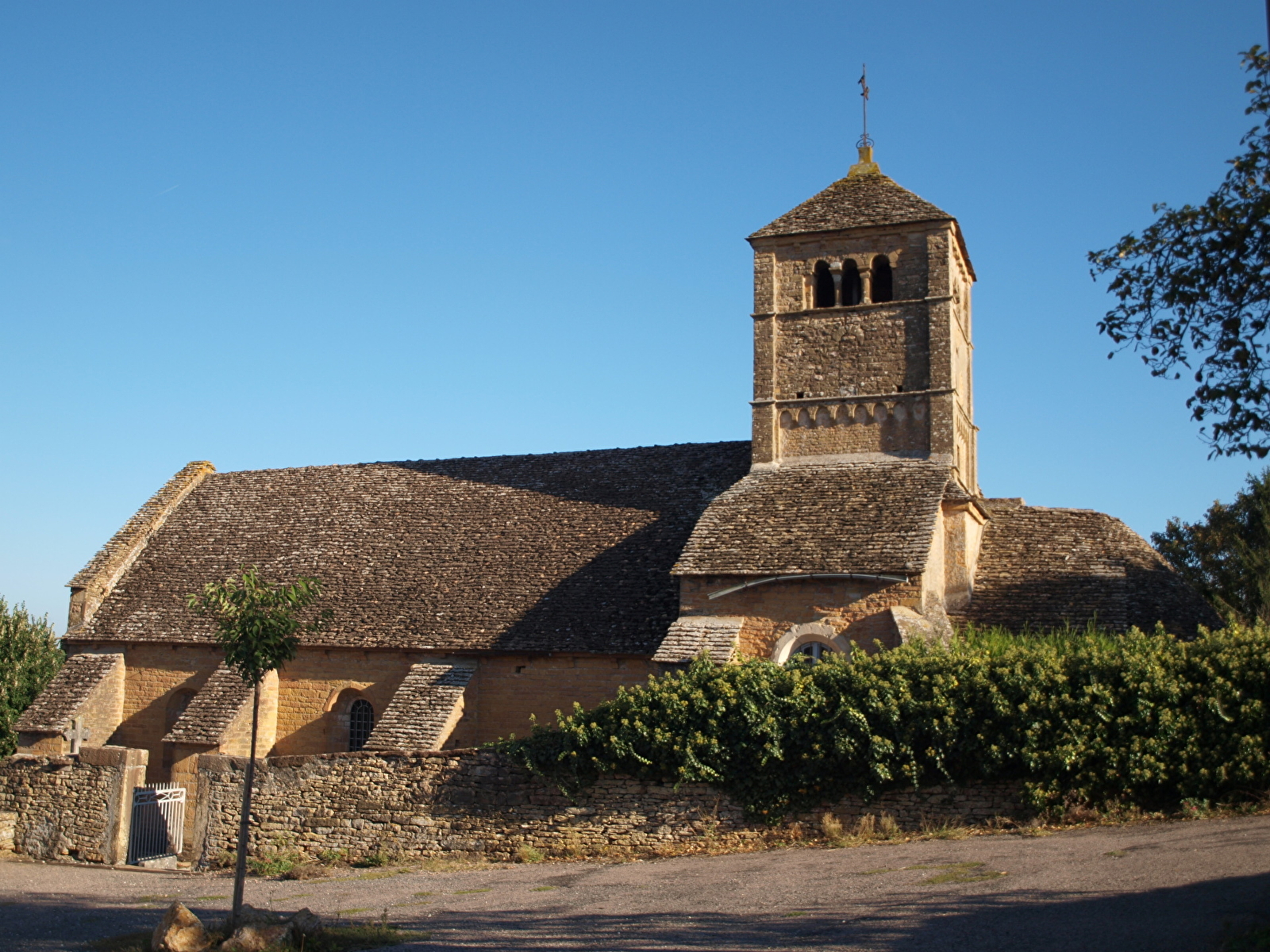 Construite durant la seconde moitié du XIIème siècle, dans un calcaire d'ocre rouge, cette église a conservé son fort clocher et en façade, un portail où se lit le nom du bâtisseur "Seguin, facteur de pierre à Malay", inscription unique en Bourgogne.