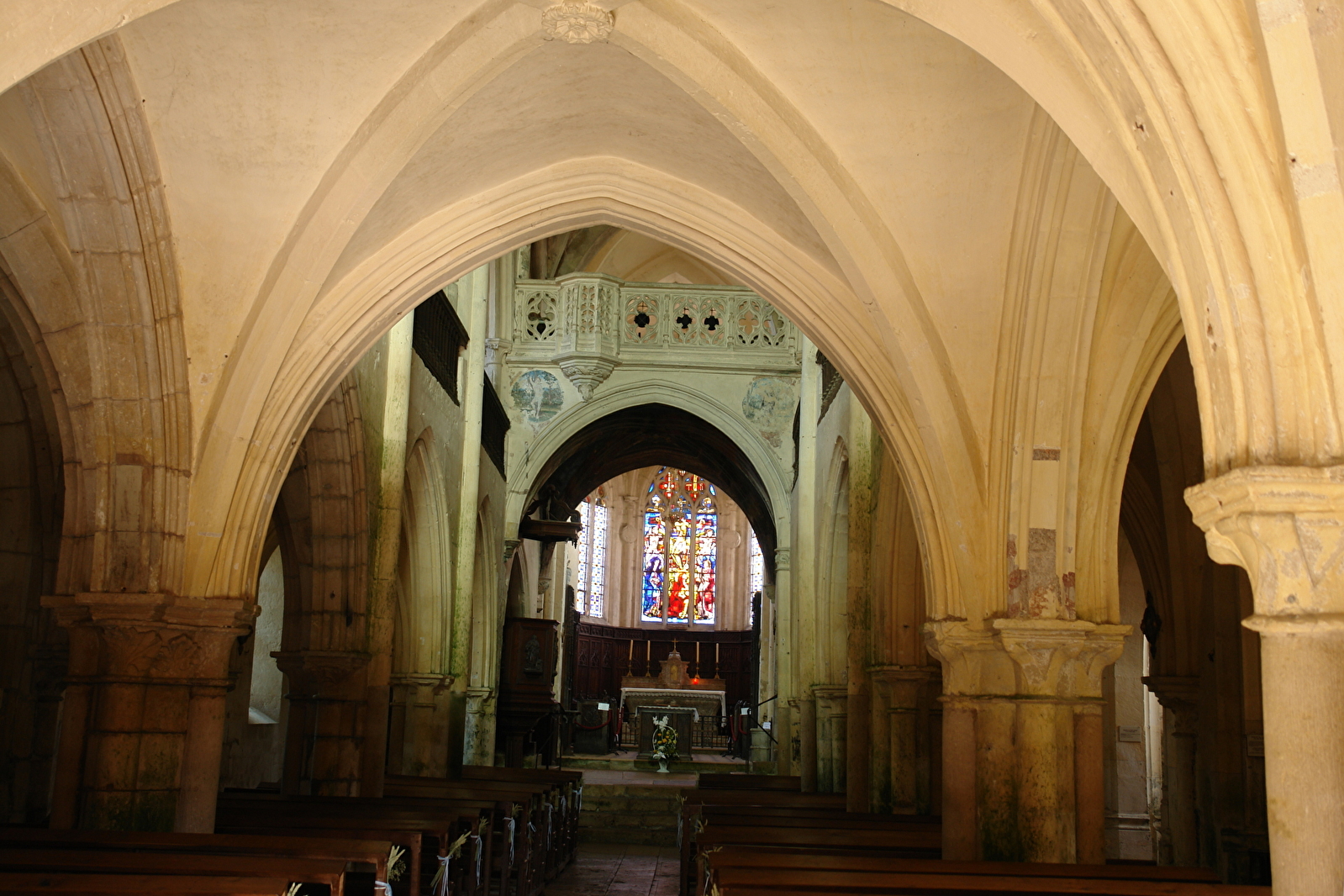 Fondé au XIIIe s. et agrandi aux XVe et XVIe s., ce vaste vaisseau gothique à l'acoustique étonnante possède un beau décor flamboyant. Remarquer la tribune avec ambon (XVe s.), les stalles en bois (XVe s.) d'inspiration compagnonnique, l'Ange de l'Annonciation (XVe s.), les plafonds Renaissance des chapelles funéraires et une très belle Vierge allaitant en pierre polychrome (XIVe s.).