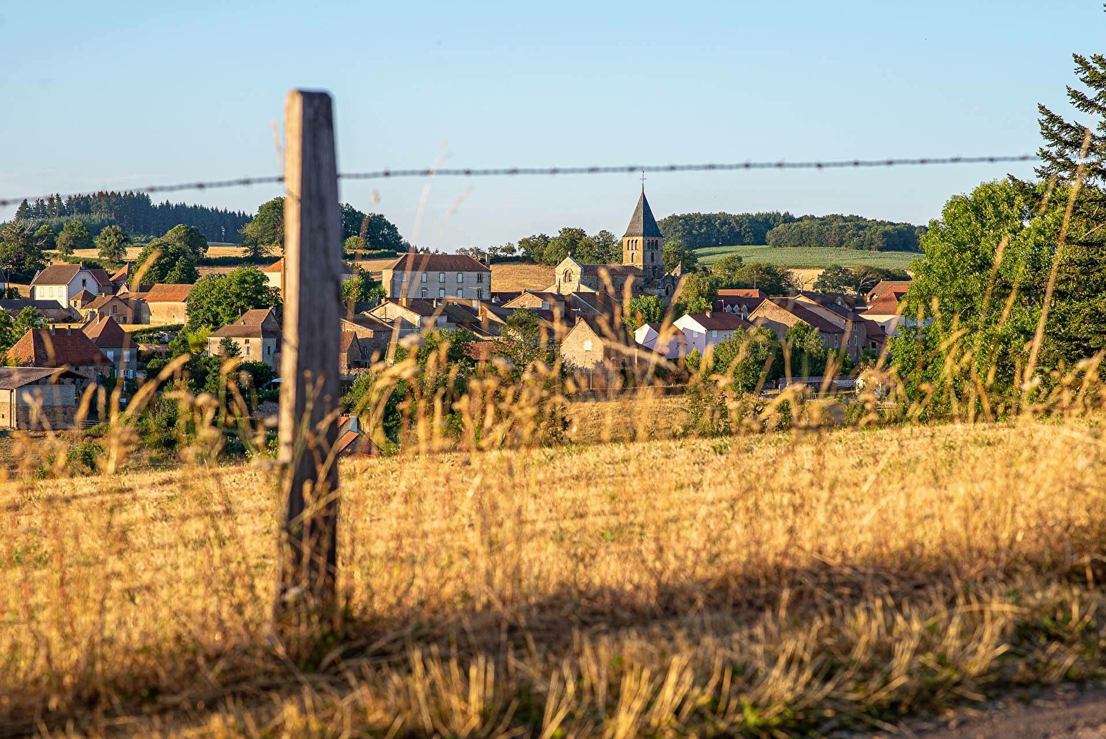 Édifiée à la fin du XIème siècle, cette église est l'une des plus importantes du Brionnais. Ce monument a été littéralement sauvé de la ruine par une restauration au XIXème siècle. Il possède le seul déambulatoire du Brionnais, délimité par une jolie colonnade. Les chapiteaux de la nef, très expressifs, illustrent l'affrontement des forces du Bien et du Mal.