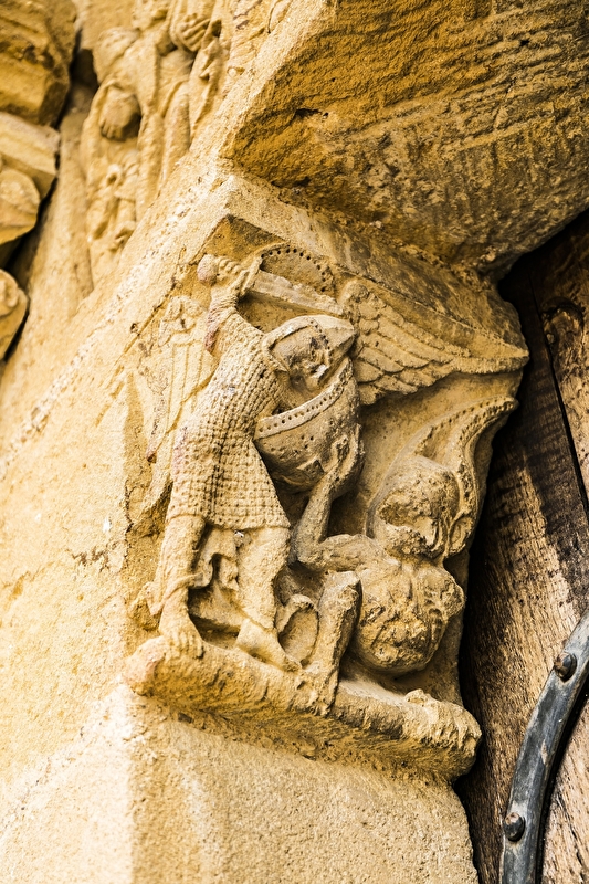 Édifiée au début du XIIème siècle, cette église a perdu son abside romane, remplacée au XVIIIème siècle par une belle chapelle funéraire aux influences baroques. Le tympan du portail occidental, représentant le Christ en majesté, et son linteau, orné des douze apôtres, sont considérés comme un chef-d’œuvre de la sculpture romane, par leur réalisme et leur mouvement.