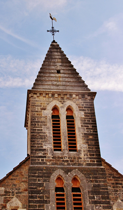 L’église ne possède donc ni abside, ni transept et n’est donc pas en forme de croix latine comme le veut la tradition. La commune dut attendre d’avoir les moyens de racheter les bâtiments, où sera construit le clocher-porche en 1889-1890 sur les plans de 1888 de l’architecte parisien François Dulac.