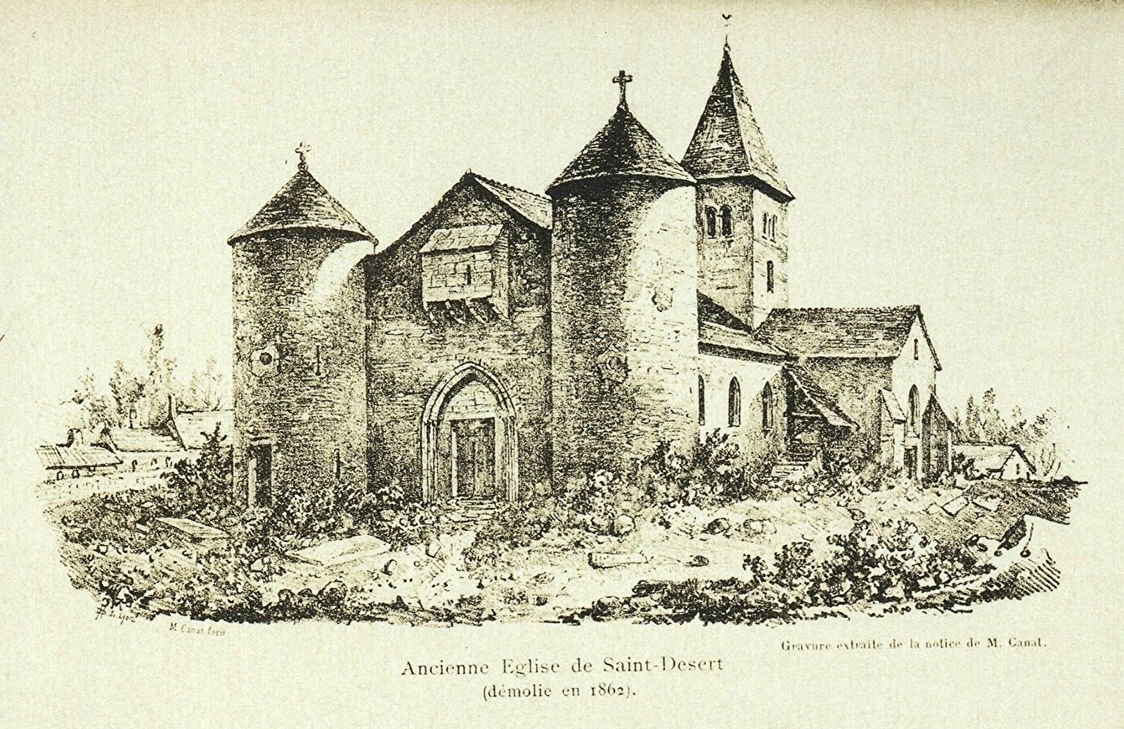 Le village de Saint-Désert fut, dès le XIII° siècle, une possession de l’évêché de Chalon-sur-Saône. Un siècle plus tard, le chapitre de la cathédrale saint-Vincent de Chalon en est le seul seigneur. Cette absence de propriétaire laïc jusqu’au XVI° siècle explique sans doute l’inexistence de château-fort et le caractère défensif de l’église (la base des tours et la bretèche sont d’origine, le couronnement crénelé est un ajout du restaurateur), jadis située sur la ligne de remparts.