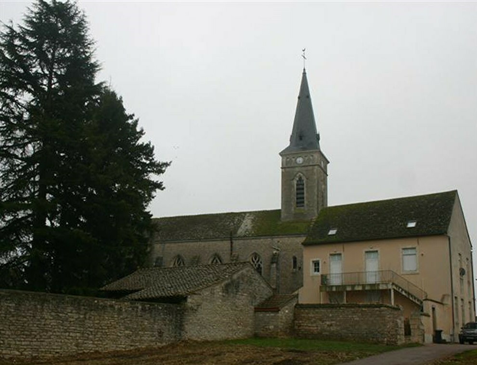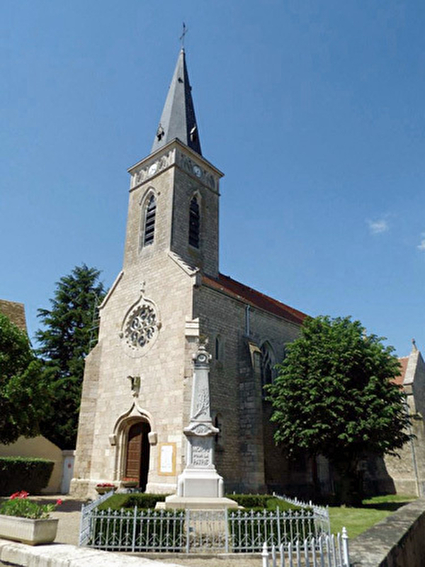 Une pierre gravée, classée MH en 1914, rappelle la dédicace de l’ancienne église, avant la fête de l’Assomption 1448, par Jean Germain, évêque de Chalon. Cette église fut démolie en 1876 et reconstruite en style néo-gothique flamboyant.