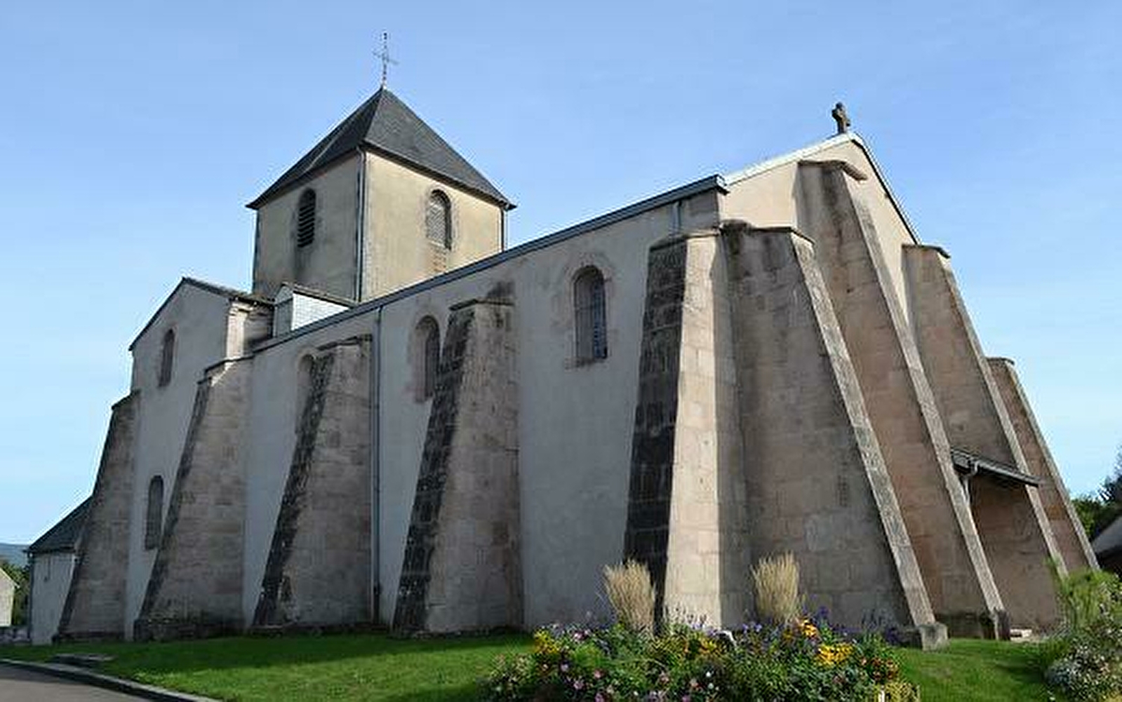 L’église date du deuxième quart du 12e siècle, on estime que le chœur fut commencé dans les années 1120 et que la nef fut complétée vers 1140. Le plan présente une nef de trois travées avec bas-côtés, un transept légèrement saillant et une abside semi-circulaire précédée d’une travée de chœur. Une chapelle gothique se greffe au sud du chœur et une sacristie se trouve au nord. L’extérieur a été entièrement remanié et n’est guère d’apparence romane. Le clocher, sur la croisée du transept, est ouvert par des baies simples. Les grands contreforts contrebutant la façade, la nef et le transept sont du 17e siècle. La façade et le portail sont d’apparence moderne. Seule l’abside est typiquement romane pour son appareil et ses baies. On y remarque quelques modillons aux volutes simples.