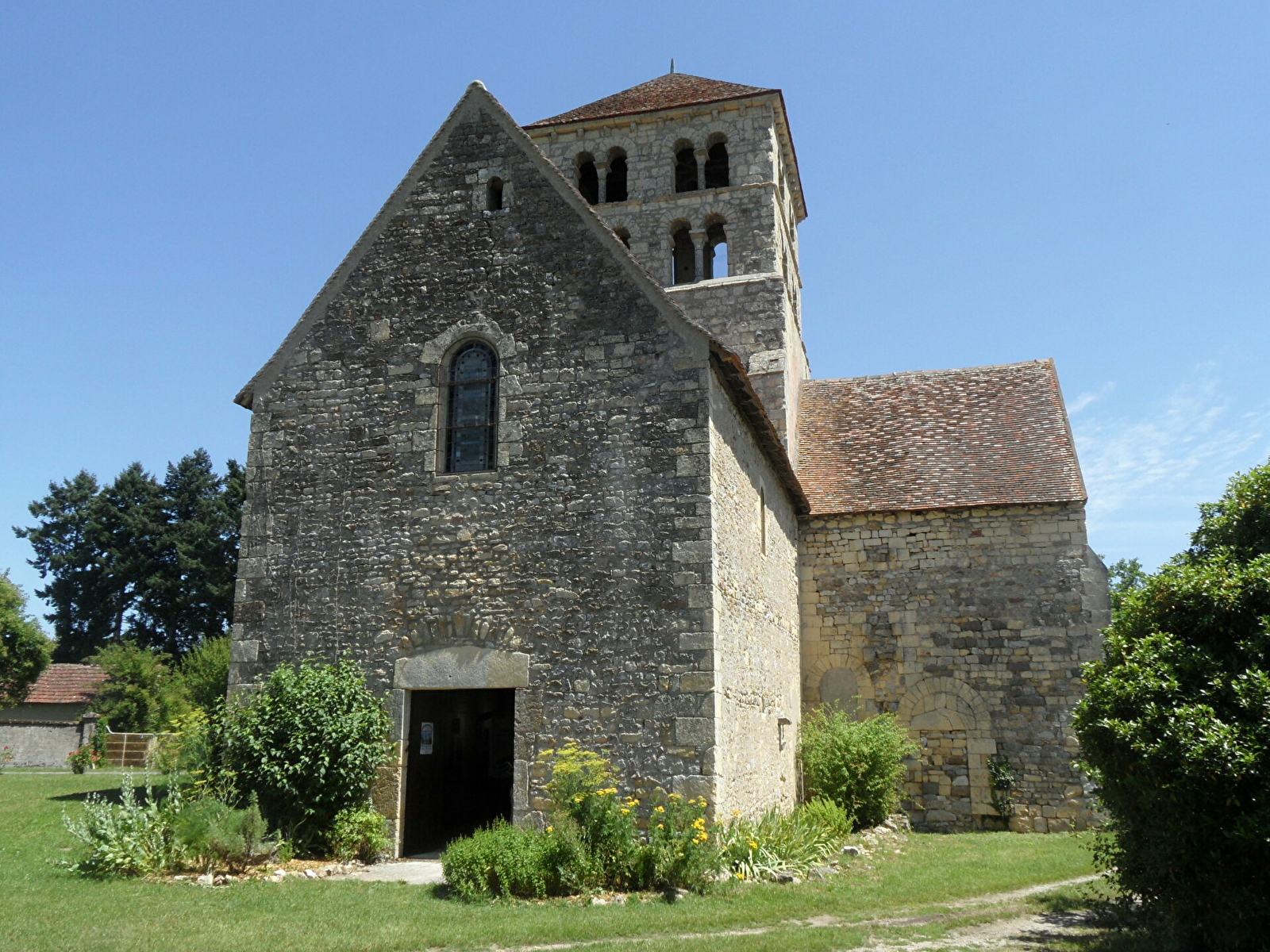 Elle est "orientée" selon l'axe Est-Ouest mais avec un décalage de 18° correspondant à la Saint-Laurent, patron de cette église dont la fête est le 10 août. Son plan est celui d'une croix, composé d'une nef unique, d'un transept saillant et d'une abside principale axiale formant le cœur. Elle a une belle coupole sur trompes à la croisée du transept. Ses proportions harmonieuses sont le signe qu’à l’origine elles respectaient le nombre d’or. La reconstruction de la nef au 14e siècle qui obéit à un autre module a conservé la même esthétique. L'appareillage du chœur, des transepts et du clocher est très régulier. Il faut admirer la belle taille à joints vifs ainsi que la qualité et le grain très fin de la pierre de Montenoison.