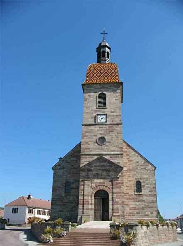 L'église Saint-Laurent est de style baroque. Elle est en grès rose vosgien et a un clocher comtois carré à toit bulbeux coiffé d'un haut lanternon. Eglise-halle à trois nefs de cinq travées voûtées en berceau et séparées par de robustes colonnes doriques. Très belle chaire en bois sculpté et polychrome, XVIIIe.