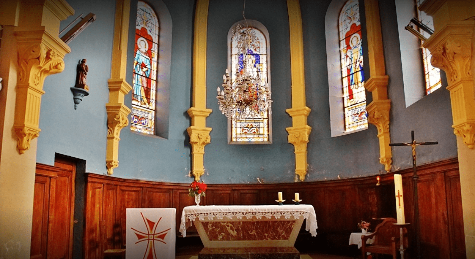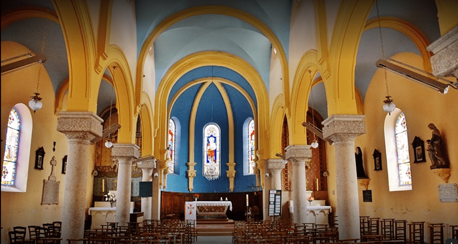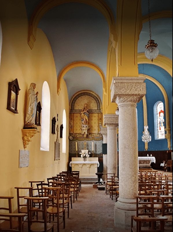 prolongée par un avant-chœur d'une travée et d'un chœur semi-circulaire.