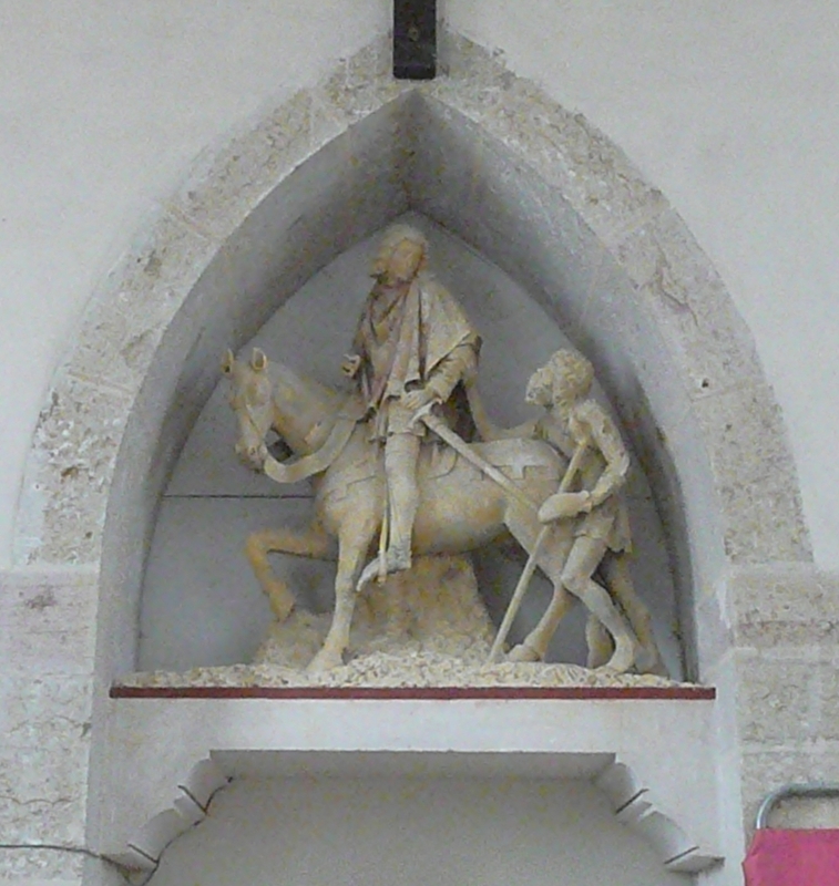 Eglise comportant 2 travées XIVe avec culots ornés de grotesques, une nef (milieu XIXe) avec marques de compagnons, et un sanctuaire (fin XIXe) entièrement orné de fresques murales d'un type assez rare. Grande statue équestre de Saint-Martin placée dans cet édifice par les moines de Saint-Vivant rattachés à Cluny.