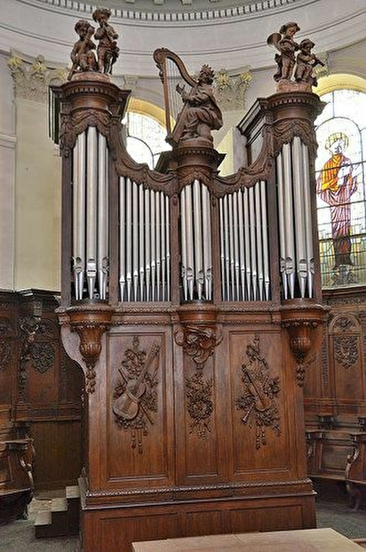 Cette église est originale par son importante statuaire (Docteurs de l'Église, fondateurs d'ordre religieux, Vierge de l'Apocalypse). Certaines statues datent du XVIIe siècle. L'architecture baroque reste assez dépouillée (pilastres, chapiteaux à base de feuillages, corniche très saillante, clé de voûte du chœur à têtes d'angelots). Elle est dotée d'un bel orgue de choeur et de vitraux de maître-verrier chalonnais Besnard. On notera la présence d'une coupole octogonale à la croisée du transept.