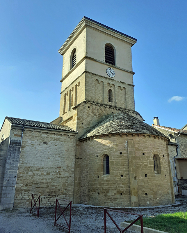 Vers 1150-1200 (plan Guerreau) : reconstruction de l'église, composée d'une nef unique suivie d'une travée sous le clocher et d'une abside. Le clocher, assez bas, est décoré de bandes lombardes.