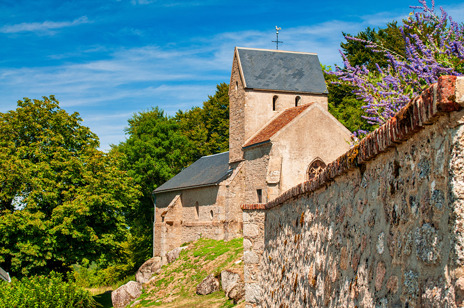 Anciennement appelée Saint-Sébastien, l'église Saint Roch daterait du XIIe siècle. Posée sur un important rocher, l’église maintenant placée sous le vocable de saint Roch est l’ancienne chapelle castrale des seigneurs d’Uchon. Les armes royales de France composées de trois fleurs de lys figurent au-dessus de la fenêtre du clocher. C’est un petit édifice de 21,50 m x 10 m, au plan barlong, très simple. Une nef rectangulaire romane non voûtée se prolonge par une croisée de transept plus étroite qui ouvre, par un large arc doubleau en plein cintre, sur un chœur légèrement oblong à chevet plat accosté d’une sacristie. Le chœur a été construit en 1347 par la reine Jeanne de Navarre, fille de Louis X le Hutin et de Marguerite de Bourgogne; il offre un couvrement intéressant, sur croisée d’ogives, dont les larges arcs sont creusés en cavets et reposent aux angles sur des culs de-lampe. Une large ouverture en lancette à remplage flamboyant éclaire le chevet. Les fenêtres en plein cintre de la nef ont vraisemblablement été agrandies. Le mur pignon de la façade occidentale est percé d’une porte surmontée d’une fenêtre très étroite, mais l’entrée de l’église se fait actuellement par une porte latérale. Un clocher rectangulaire s’élève au-dessus du transept. Il est, comme le reste du bâtiment, couvert d’ardoises et percé au niveau supérieur d’ouvertures en plein cintre avec abat-sons . D’épais contreforts à glacis soutiennent les murs de la nef et du chœur. L’autel du chœur et ceux de la nef sont décorés d’arcatures gothiques ouvragées. À gauche de l’autel une petite niche à décor gothique renfermait autrefois un reliquaire contenant les restes de saint Sébastien, objet d’importants pèlerinages à la suite des épidémies de peste de 1502 et 1652.