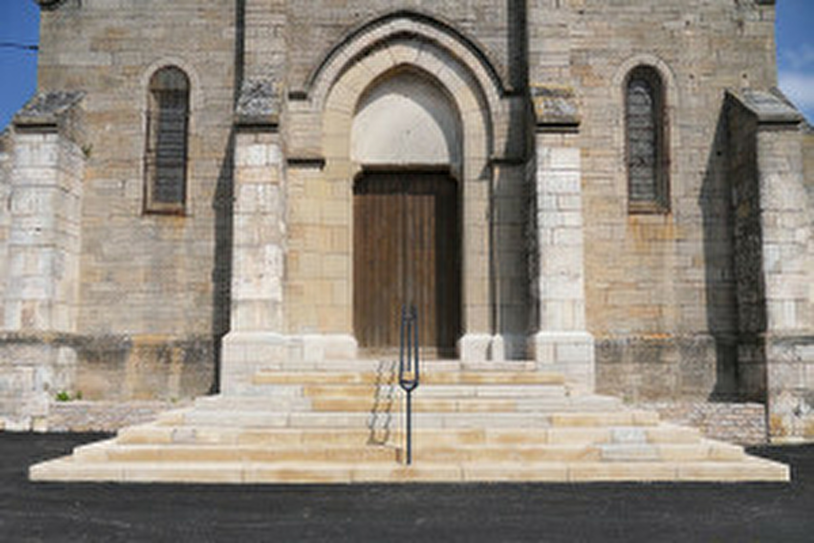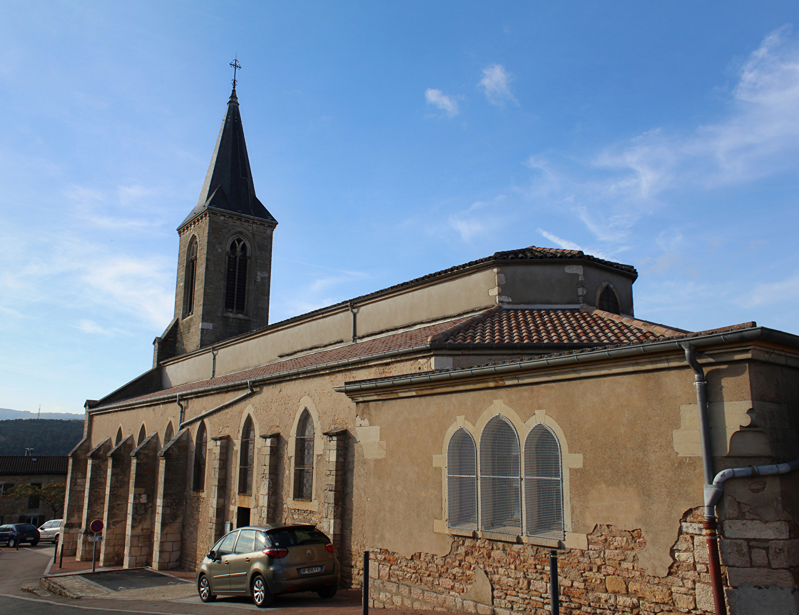 L’église de La Roche Vineuse se dresse sur le sommet du rocher escarpé qui portait autrefois un château fort, aujourd’hui disparu. Elle est dédiée à Saint Sorlin, déformation de Saint Saturnin, évêque de Toulouse. L’église romane primitive existait déjà en 962, elle dépendait alors de Cluny avant de devenir église paroissiale pour le village. Elle est agrandie au XVe et en 1834, mais cela ne suffit pas. La municipalité choisit de bâtir, à son emplacement, en 1853, l’église néo-gothique actuelle, d’après les plans de l’architecte mâconnais Ancelin.