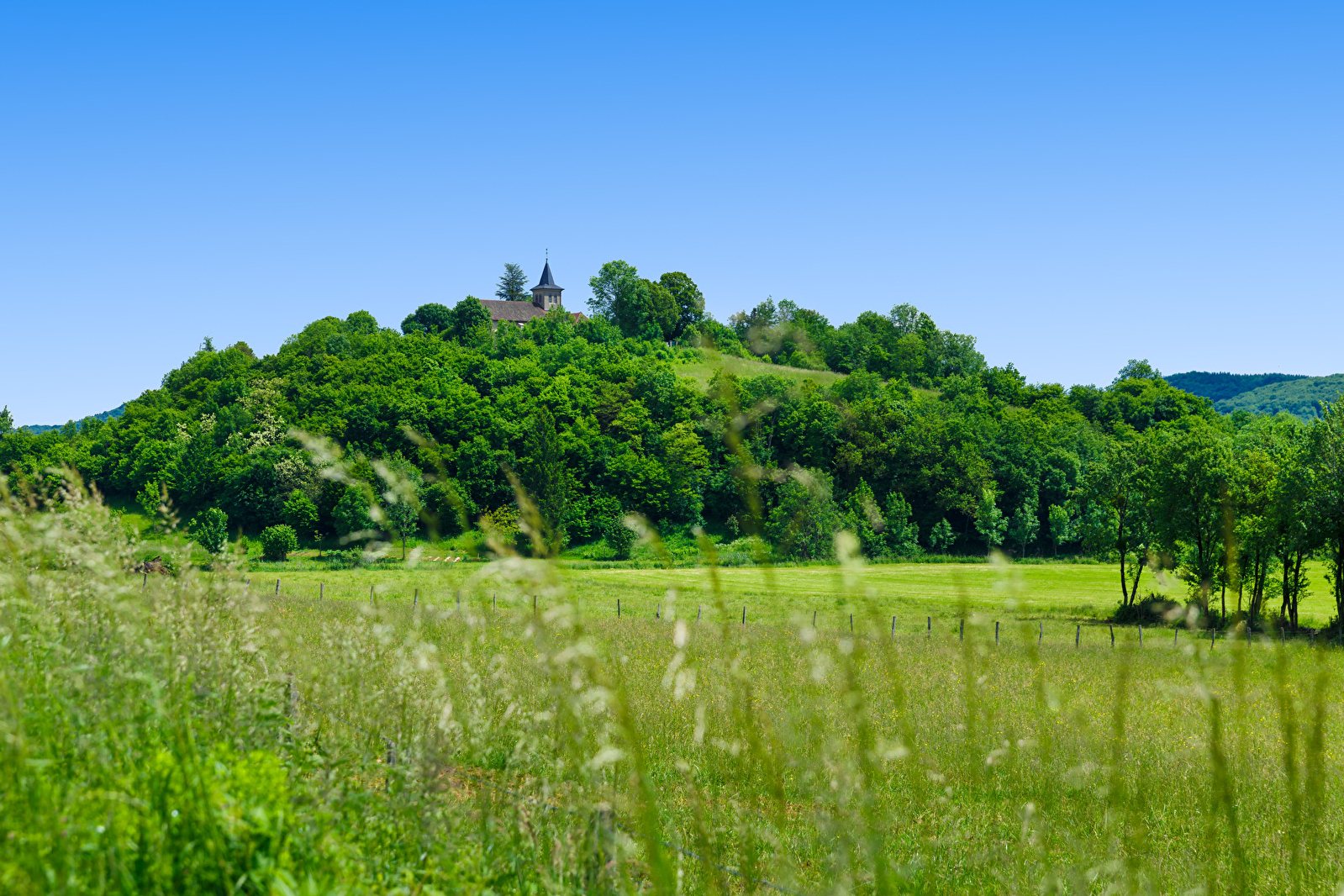 L’église Saint Saturnin est juchée sur un promontoire naturel, le Métiou d'où l'on peut découvrir depuis le tilleul centenaire un magnifique panorama sur la vallée du Suran.