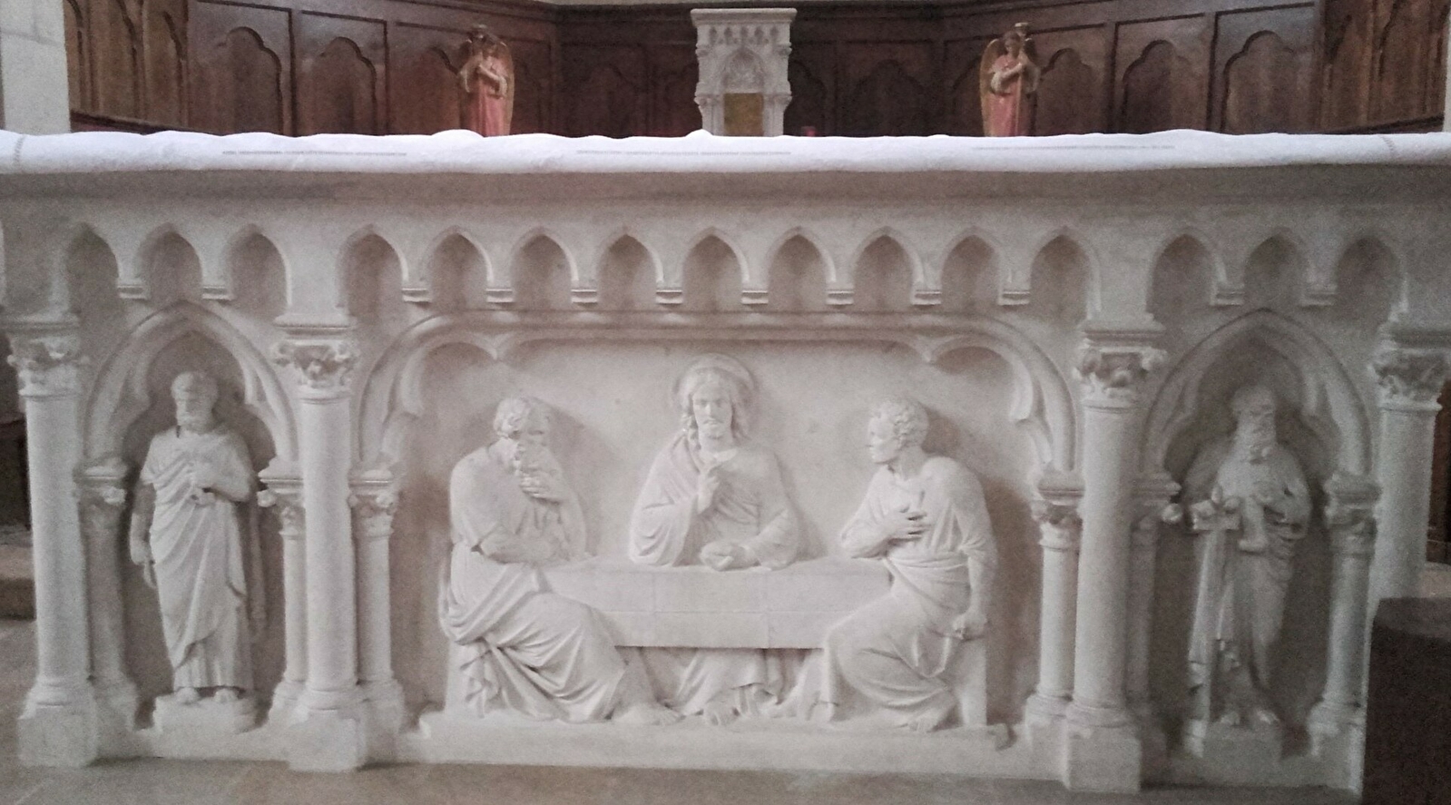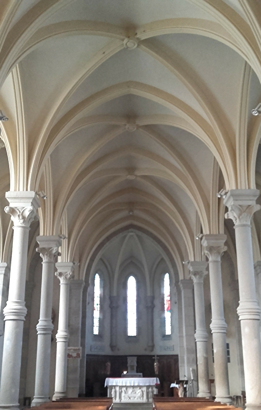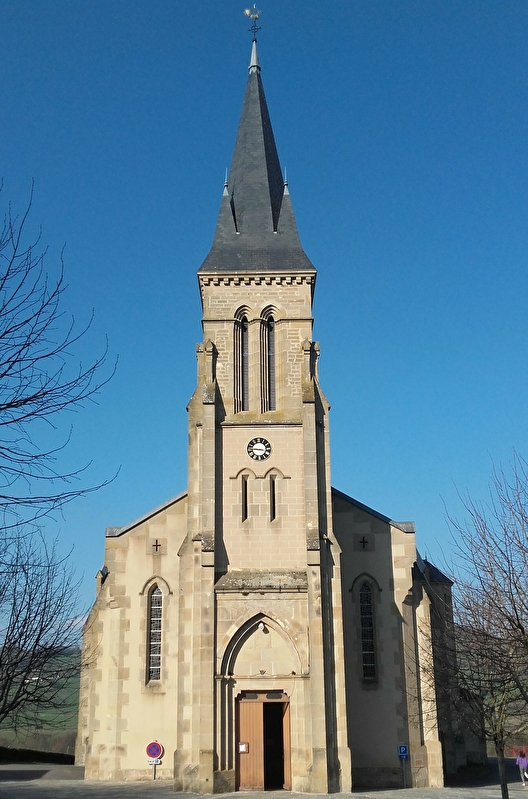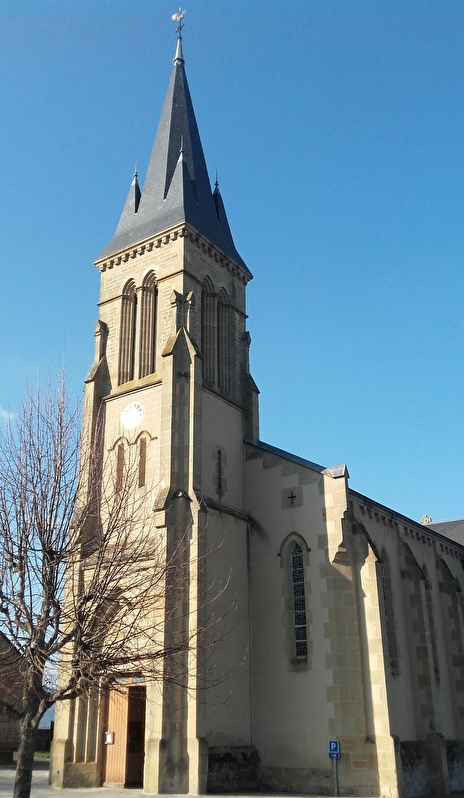 L’église, placée sous le vocable de saint Symphorien, comme le bourg, est un édifice néo-gothique, édifié entre 1878 et 1885, car l’ancien édifice menaçait ruine. Bâtie par l’architecte autunois Roidot-Houdaille sur un terrain offert par la famille Roberjot (acte du 20 février 1878), la construction fut achevée en 1881 et ouverte au culte. Restaient la partie haute de la tour, la flèche, les sculptures intérieures. L’édifice fut construit en pierre de taille et couvert en ardoises. L’ancienne église fut démolie en 1884.