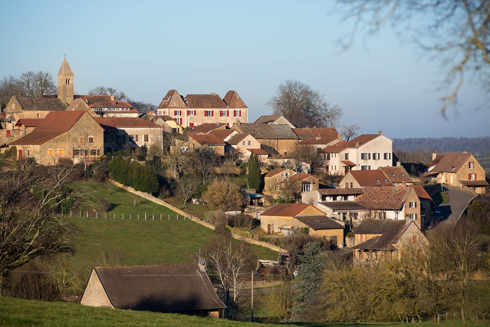 Taizé est un petit village perché sur une colline qui domine la Grosne. Les anciennes maisons se serrent autour de son église romane du XIIe siècle, qui est mentionnée en 1156 dans le Recueil des Chartes de Cluny. Elle a été classée en 1913. Elle est ouverte, comme l’église de la Réconciliation, au culte catholique et protestant.