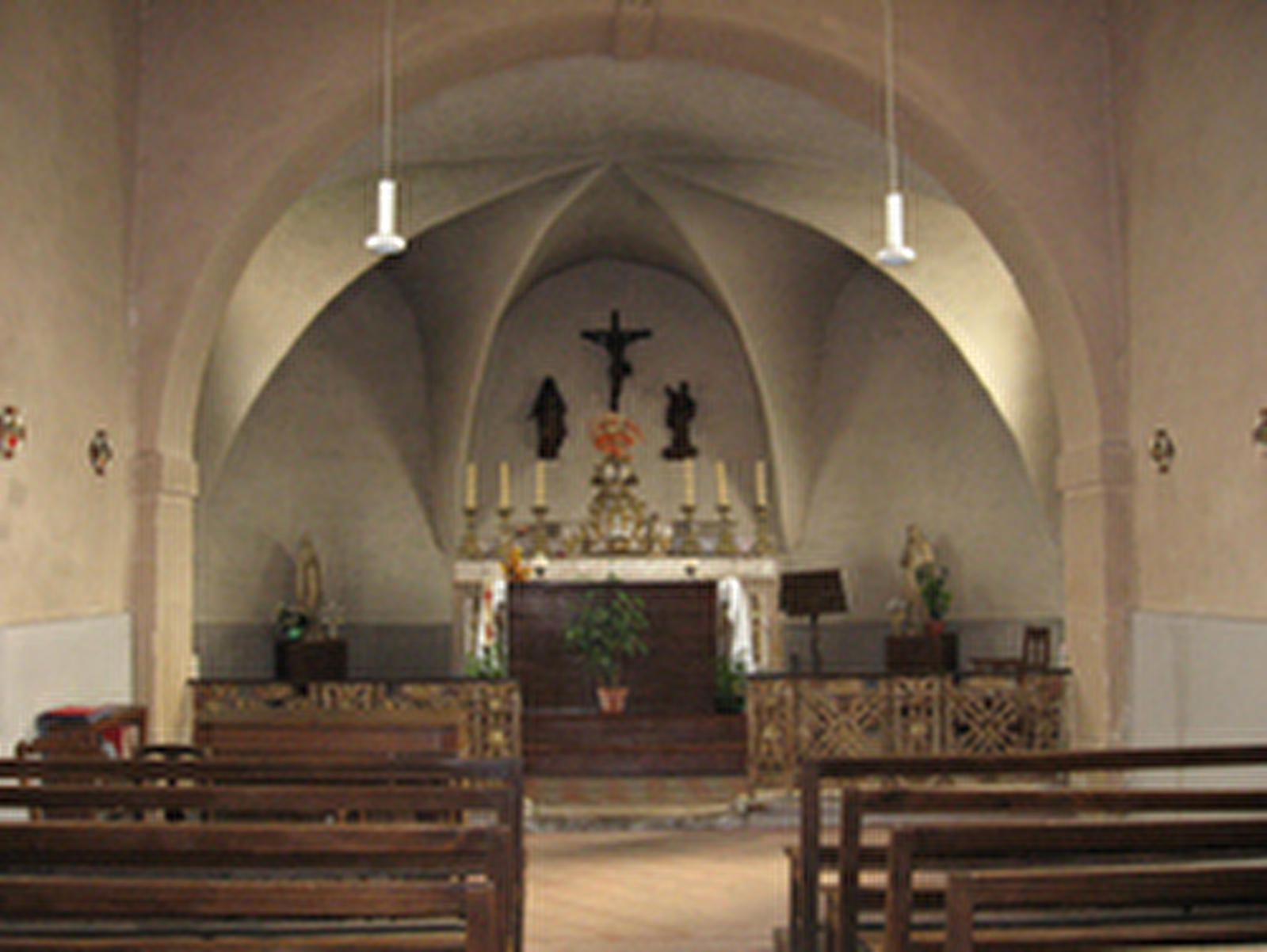 Il s'agit d'un petit édifice de montagne avec clocher XVIII e siècle à toit en flèche. Auvent sur piliers de fonte précédant le portail en plein- cintre XVII e siècle encadré de deux colonnes doriques soutenant deux frontons superposés, le tout inscrit dans un grand porche assez profond, en plein -cintre. Nef unique à deux travées plafonnés XVIII e siècle. Baies en plein-cintre. Arc triomphal sur pilastres daté de 1731. Sanctuaire plus large que la nef voûté d'arêtes est de forme pentagonale. Maître-autel Louis XV, en bois sculpté, table en forme de tombeau galbé, décorée de rinceaux et grand feuillages enrubannés.
