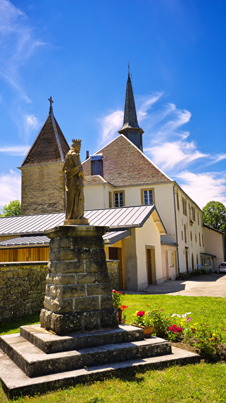 Non loin du prieuré clunisien, siège un haut-lieu de culte religieux jurassien : l’Ermitage de Notre-Dame de Mièges. On raconte qu’au 15ème siècle, un chevalier se désaltérant dans une source baptisée « Sainte Fontaine » aurait aperçu une statue de la Vierge de Montaigu. Il aurait donc décidé de porter sa découverte jusqu’à l'église Saint-Germain mais le jour suivant, celle-ci fût retrouvée quelques mètres plus loin.