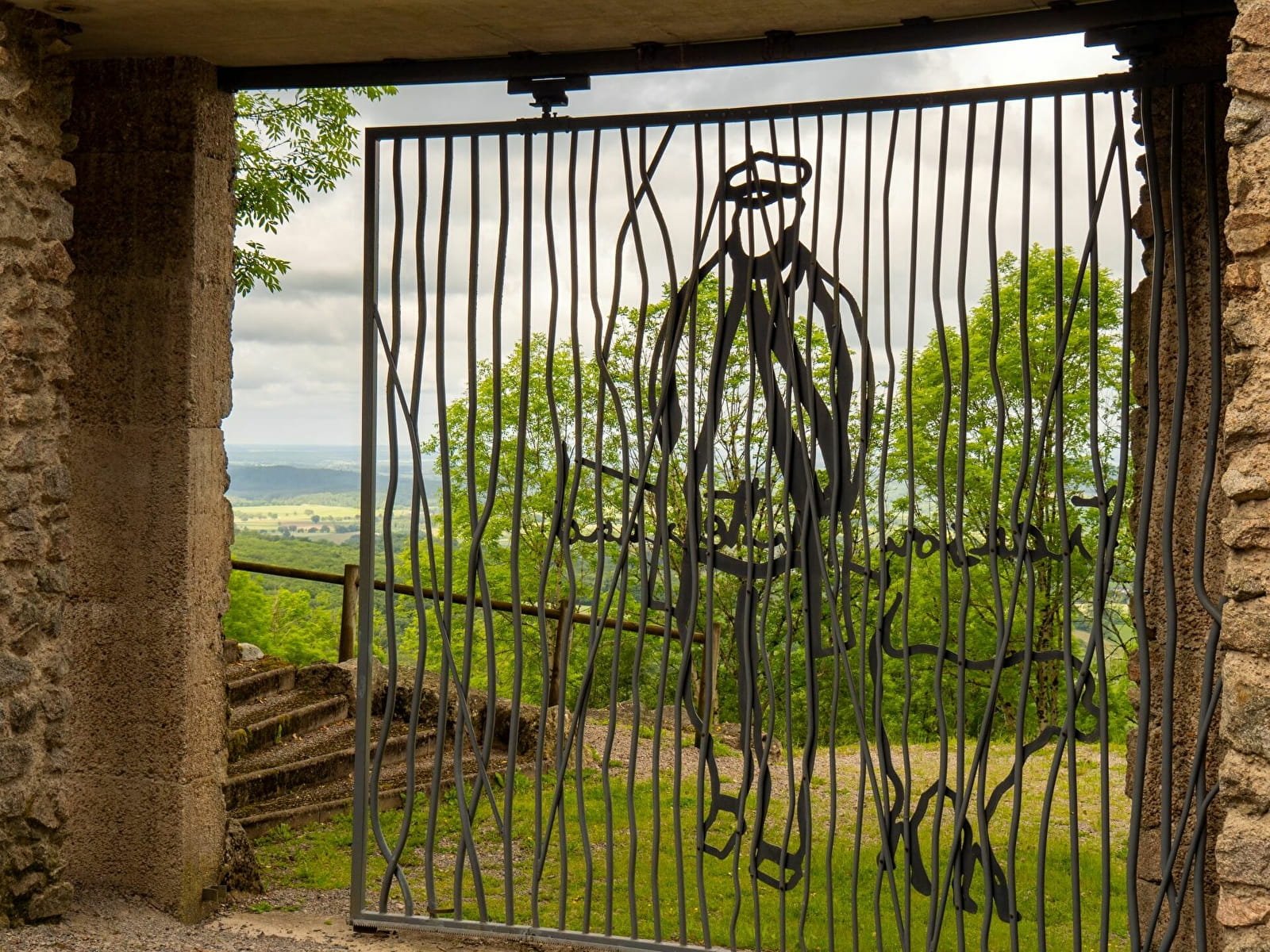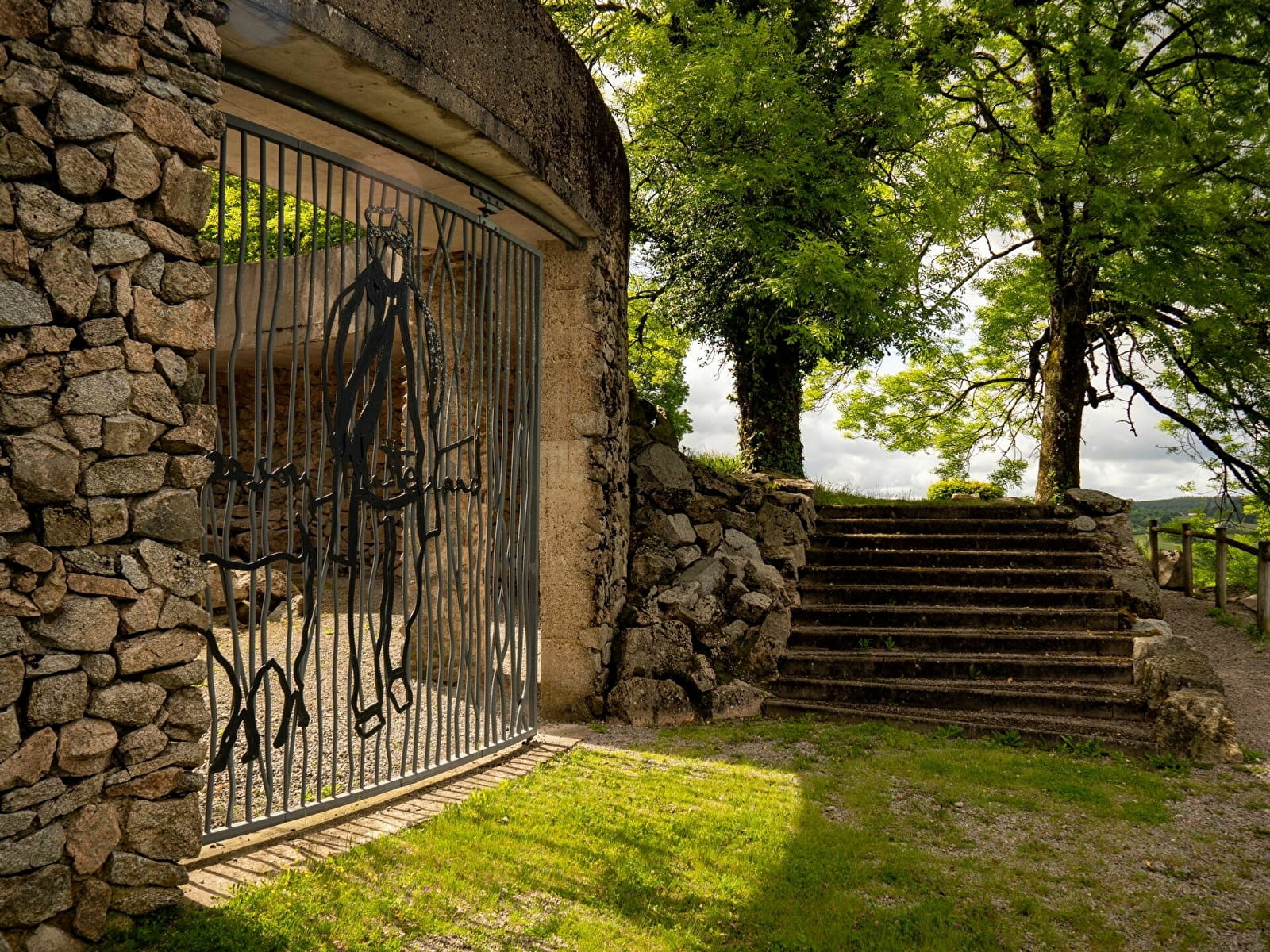 -Un buste en bronze du président et sa silhouette accompagnée de sa chienne labrador Baltique sur la grille d'entrée.